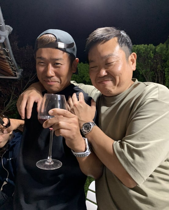 私の親友は五島列島での釣りが大好きで大阪から福江島へ移住して遊漁船の船長をしています。 左・親友の藤田 右・私