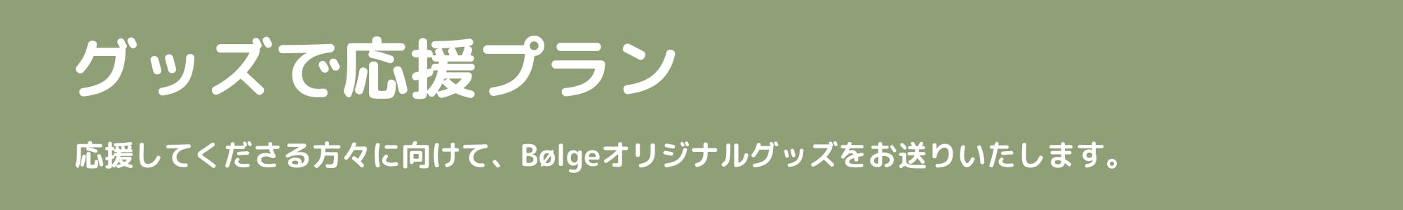 〈15,000円:お礼のメール+お礼のビデオレター+BølgeTシャツorタオル1枚提供〉