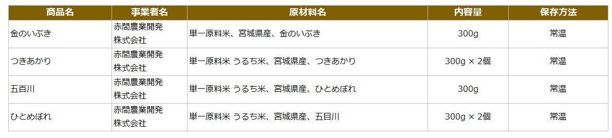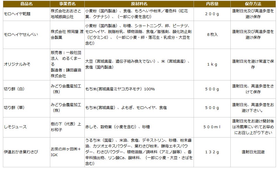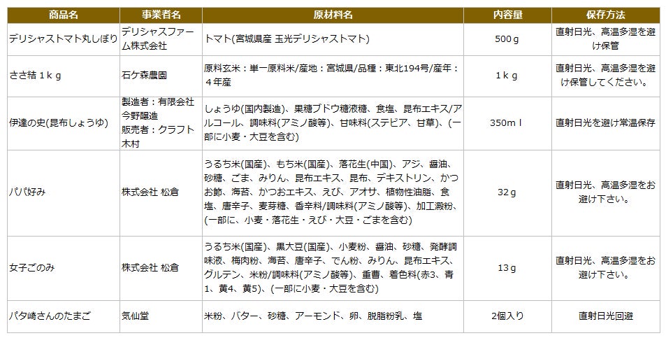 宮城県のほぼ中央「宮城のへそ」に位置する大郷町の特産品を揃えました。 自然豊かな大郷町で、大地の恵みを受けながら丹精込めで生産されたお米や野菜などが原料の 一部となっています。味はもちろん、色も香りも良い大郷町の特産品を是非ご賞味ください。