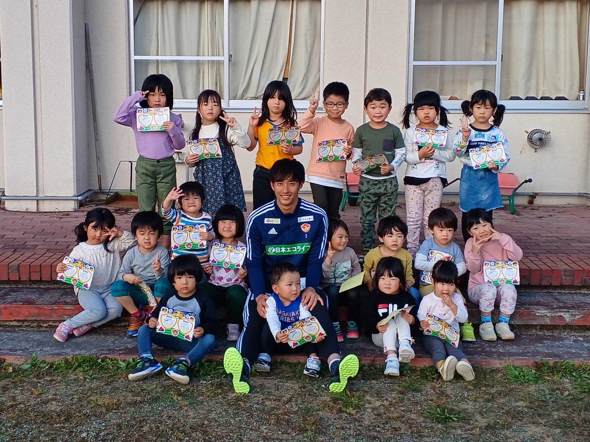 続く大河原小学校への訪問では、子どもたちがカントリーロードを歌ってお出迎えしてくれました!蜂須賀選手も「ユアスタかと思いました」と一言。シュート練習、ミニゲームなど思いっきり楽しみました。ありがとうございました!