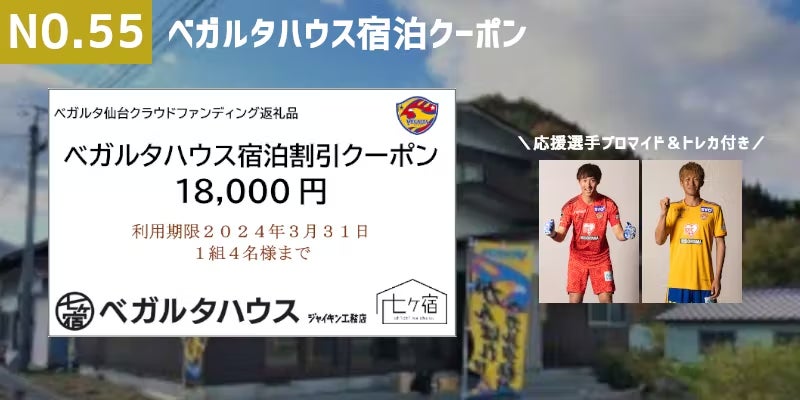 ・ベガルタハウス宿泊割引クーポン券4名1組(18,000円相当)をお送りします