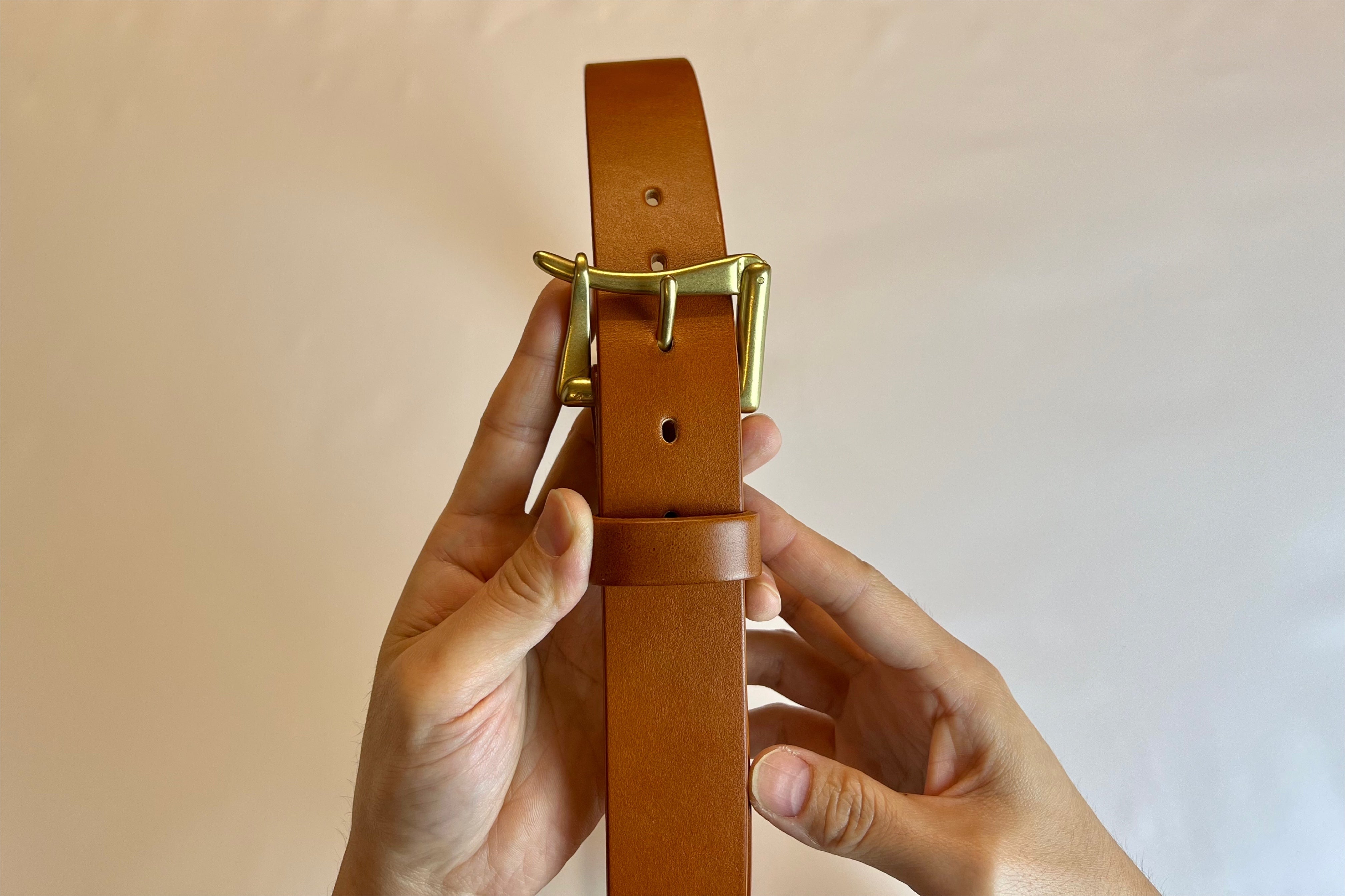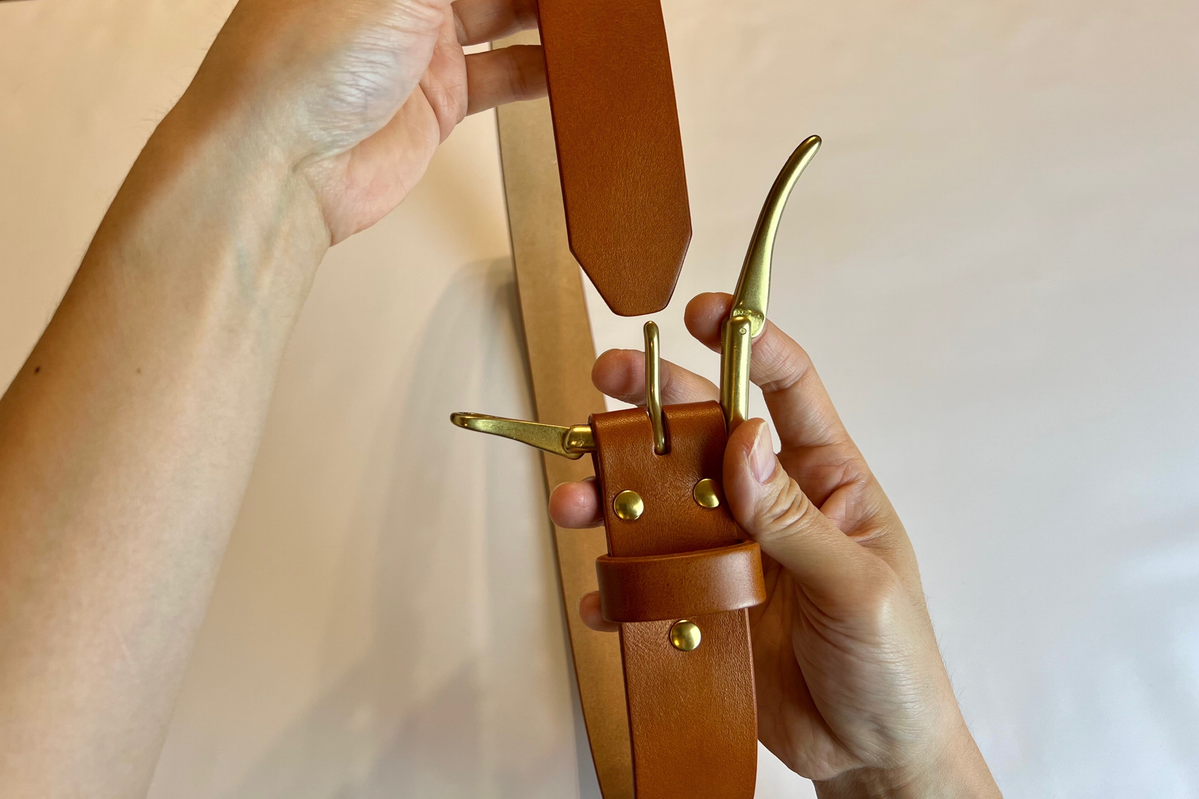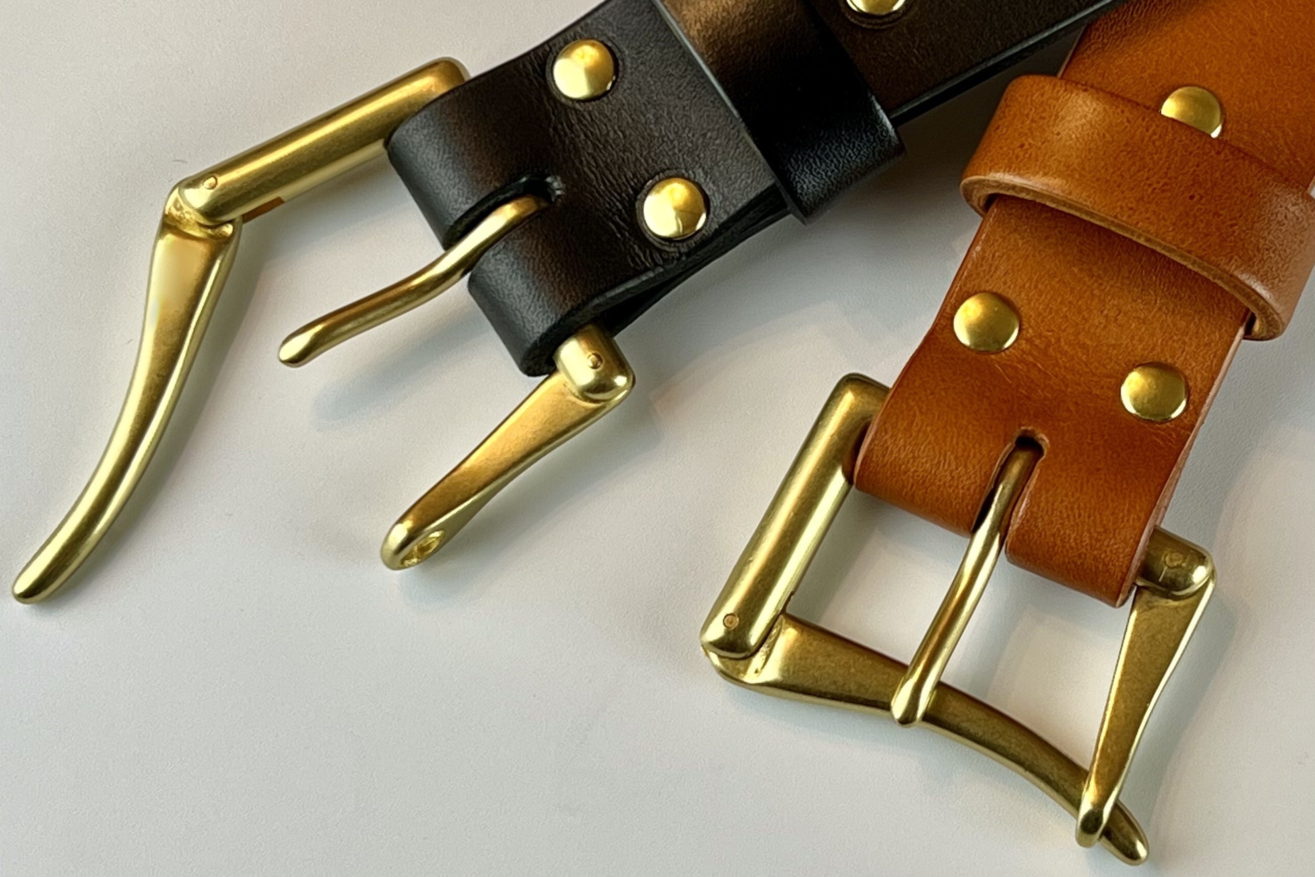 バックルは真鍮無垢材の鋳物を使っておりますので、ヌメ革との相性抜群。