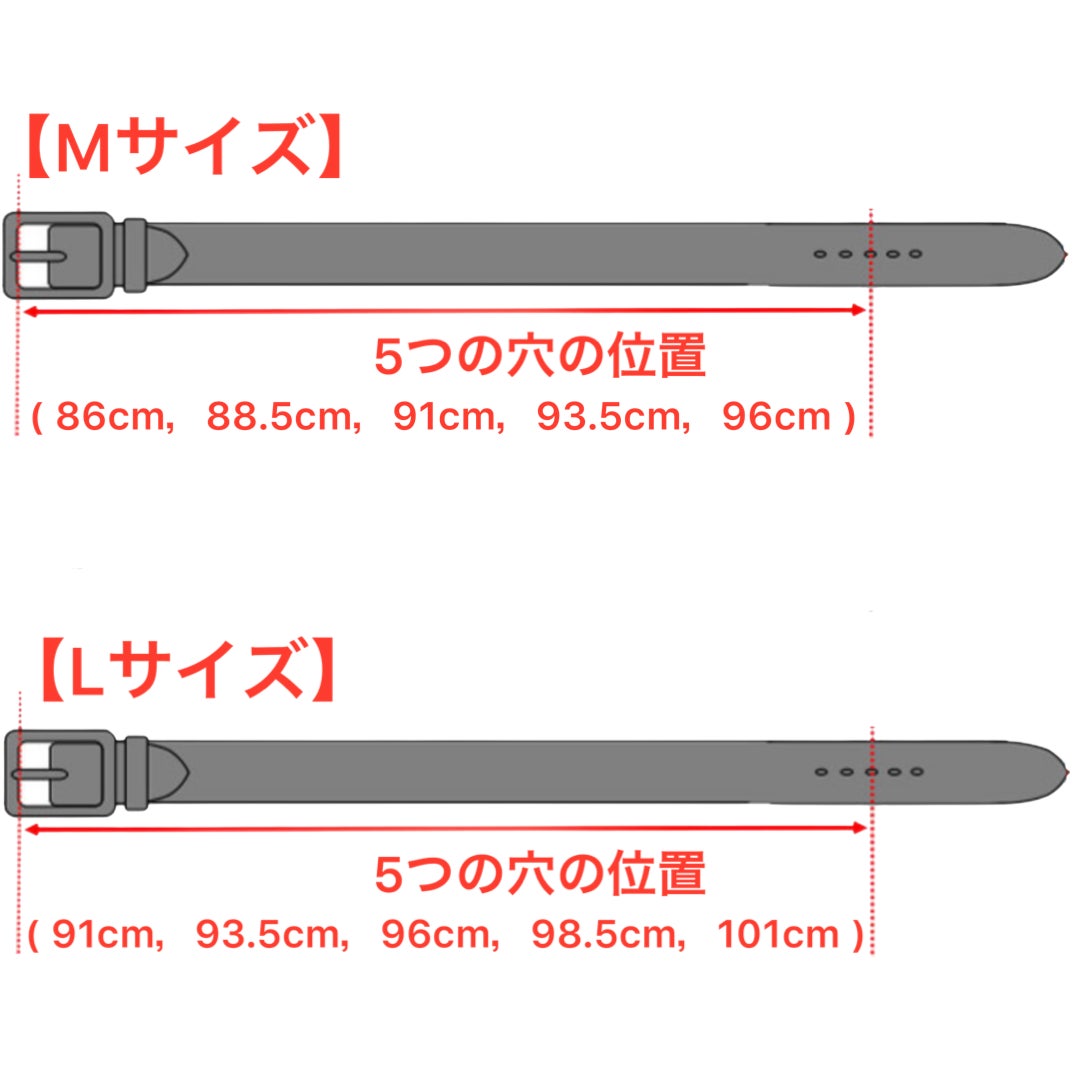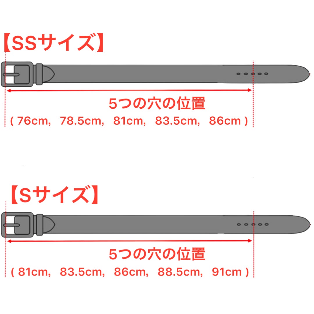 バックルピン先から普段使っている穴までの長さを見て、一番近い物を4サイズからお選び下さい。