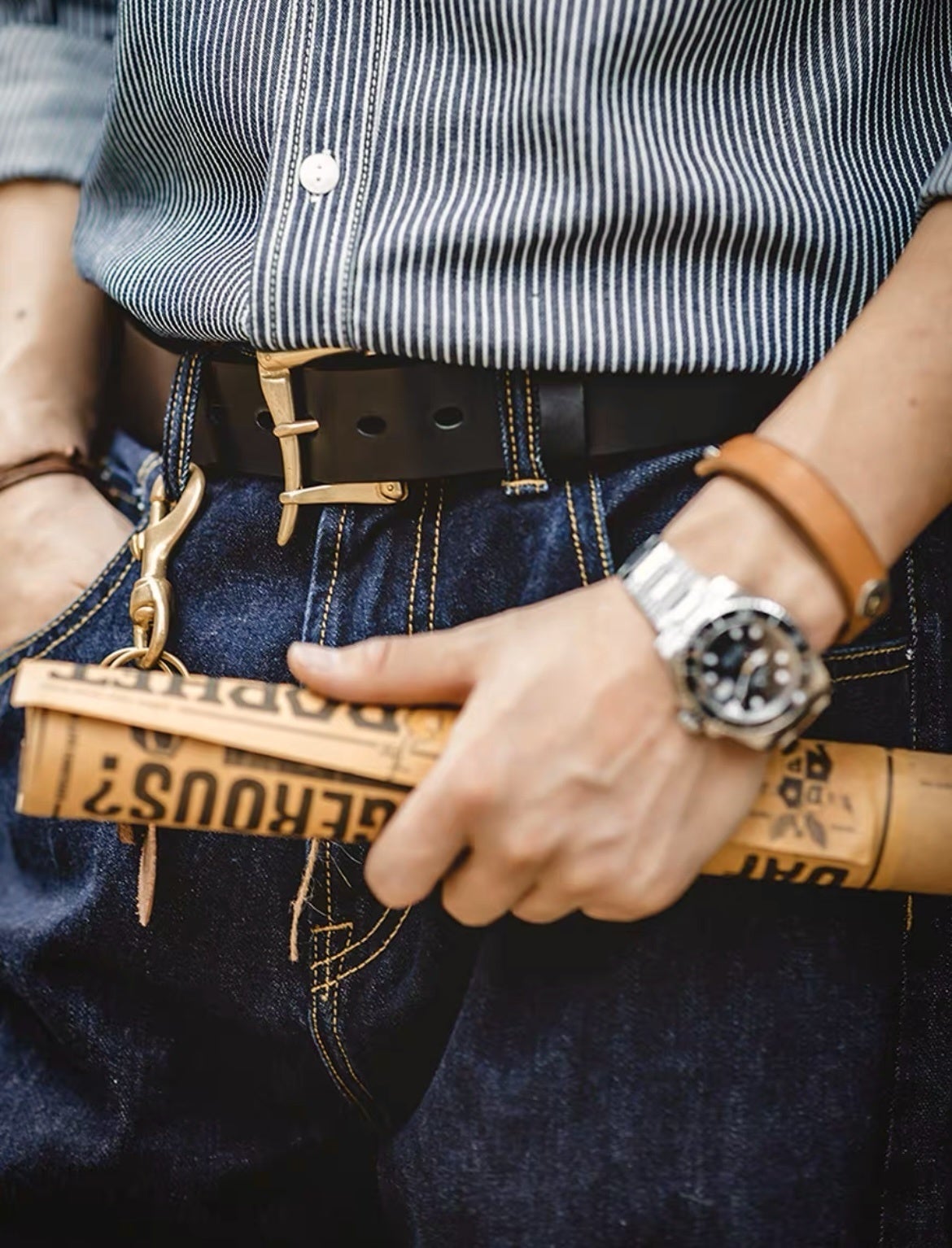 巷によく見られる合金のバックルとは違い革と共に燻し色にエイジングして行きます.