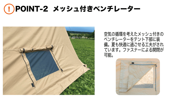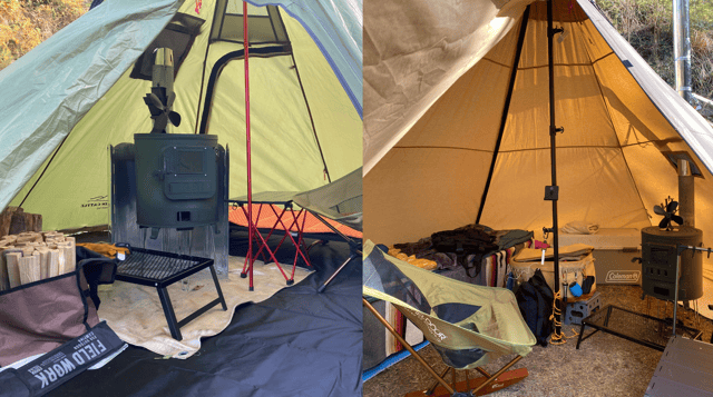 ※テント内でストーブを使用する際は、十分に換気をして一酸化炭素中毒や火災などに注意してご使用ください。(健康上の問題、火災などに関しましてはあくまで自己責任でお願いいたします。)
