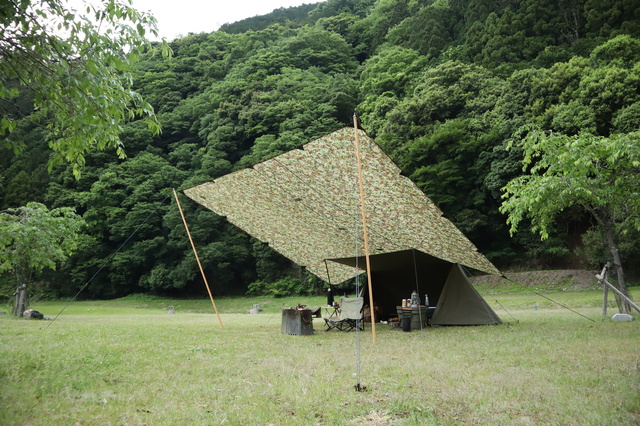 □ 雨対策用にさらにタープを貼って屋根をつくる作業が必要になる。