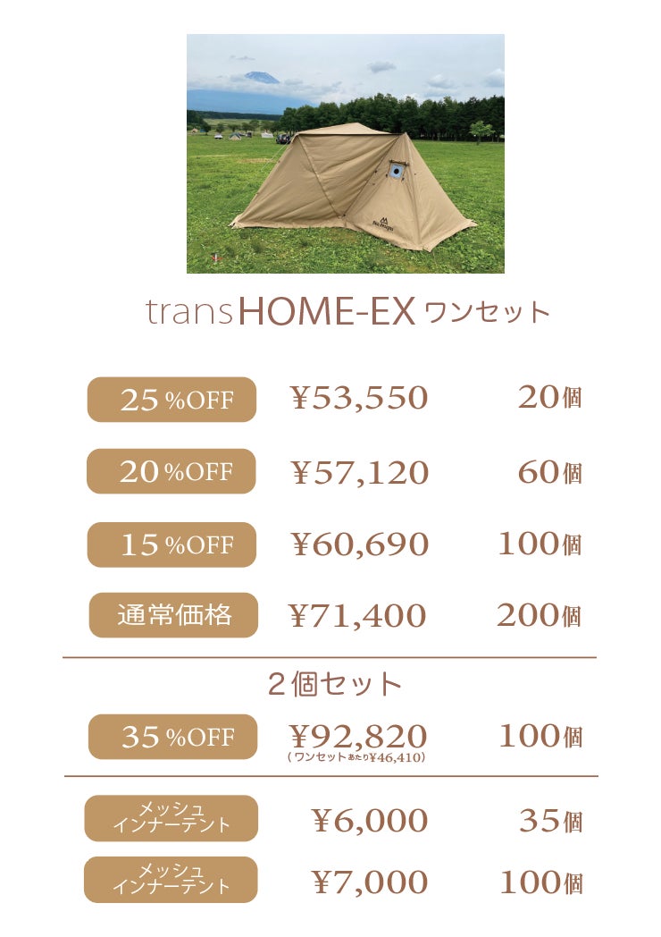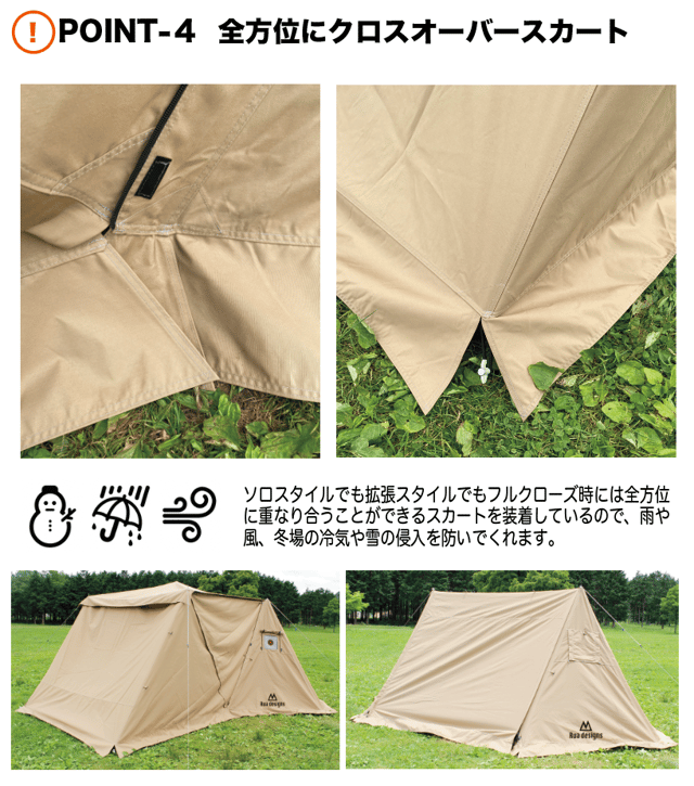 2023/02/10 15:15ご支援いただいた皆様へ今週日本の倉庫に無事リターン品が到着いたしました。2月12日(日)より、皆様の元へ発送をスタートいたします。ぜひ到着を楽しみにお待ちください!!!以下 使用上の注意事項追加↓ ↓ ↓ ↓ ↓ ↓ ↓ ↓ ↓ ↓ ↓ ↓ ↓ ↓ ↓ ↓ ↓ ↓【薪ストーブなどの火器使用に関しまして】先般もお伝えいたしました、火器使用に関しましてはくれぐれも自己責任の範囲でお願いいたします。当初同梱されていますシリコン煙突カバーは煙突直接に接すると溶けてしまう事例なども報告されていますので、煙突ガードなしでは絶対に使用しないでください。【TC素材への撥水コーティングについて】TC素材の欠点である水が染み込んでしまう欠点を補うために、撥水コーティングを施しているのですが、逆にコーティング剤が火の粉に弱いこともあり、低い煙突で、スパークアレスターを使用しないで火の粉が直接幕に当たると、コーティング剤が溶けて幕に穴が開きやすいとの事例も一部報告されています。煙突には必ず火の粉飛散を防止するスパークアレスターの使用と、できるだけ煙突と幕の距離を保つ設置方法をお願いいたします。 もっと見る