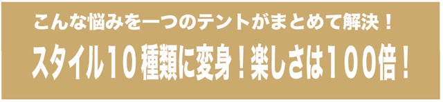 本体テントと前幕の組み合わせで、10種類以上の変身バリエーションが楽しめます!あなたの空想でさらに楽しさは100倍!ソロでもファミリーでも、グループでも、どのようなキャンプシーンにも対応できるのが「transHOME-EX」。これひとつあればキャンプ場のスーパーヒーローに変身できかも?