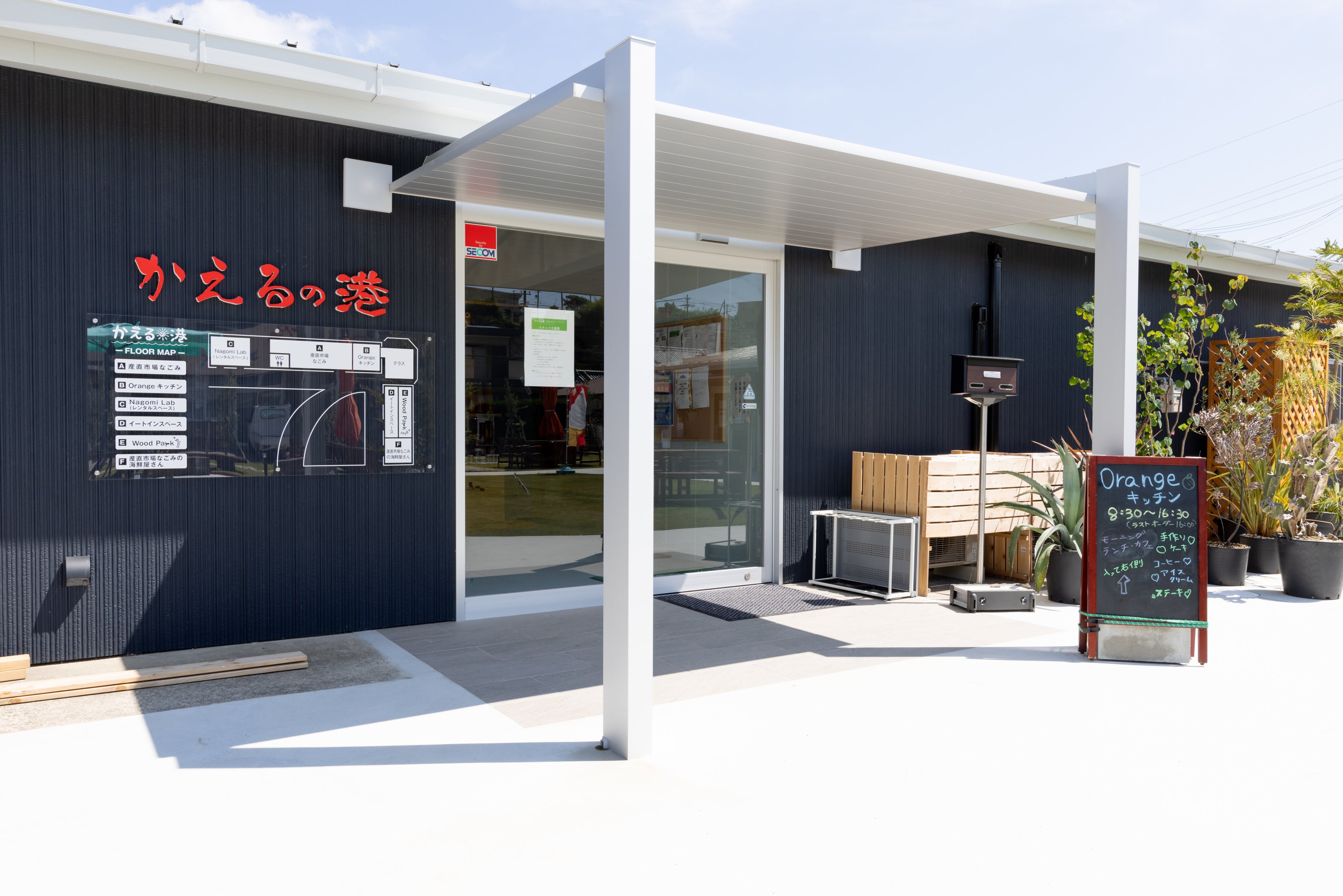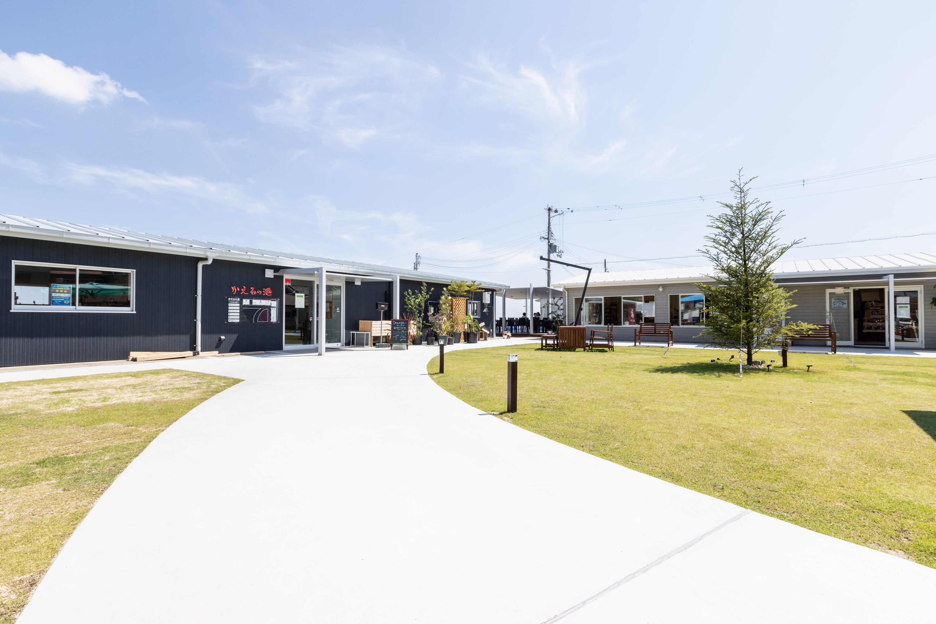 かえるの港は、2022年4月に、印南漁港内の漁具倉庫や仮眠施設をリノベーションした施設で、カフェレストラン、産直施設、コワーキング施設等の複数の施設から構成されています。