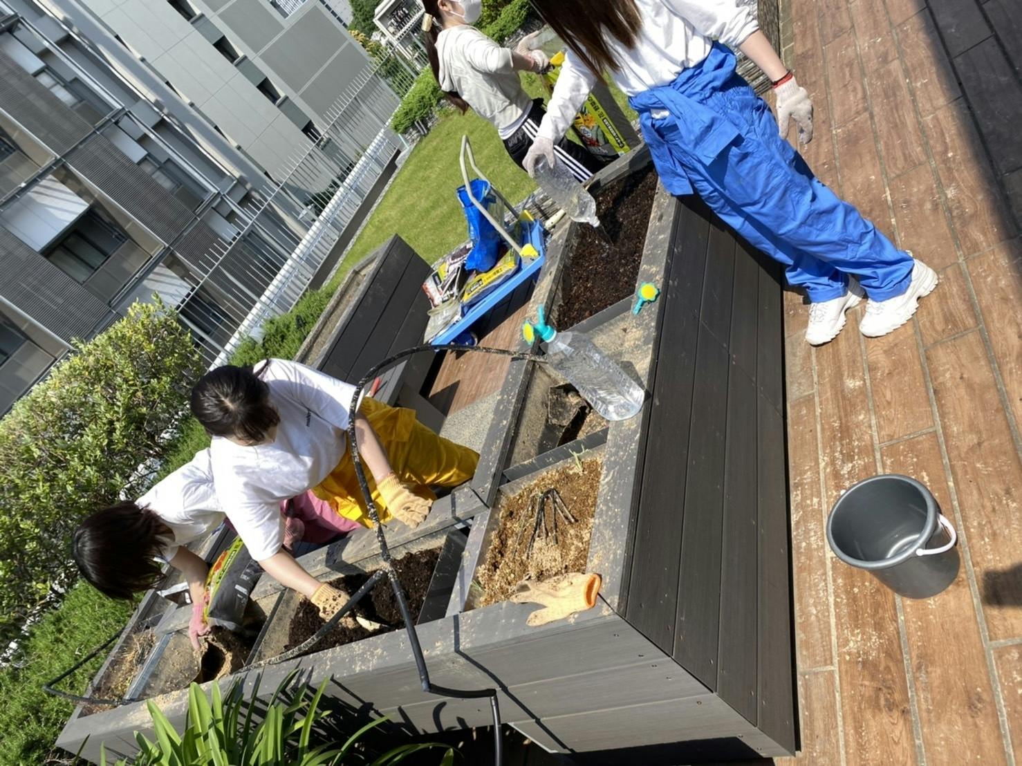 ・土の入れ替え(大学敷地内の花壇を畑として利用していて、野菜栽培に適した土に入れ替える必要があるため)