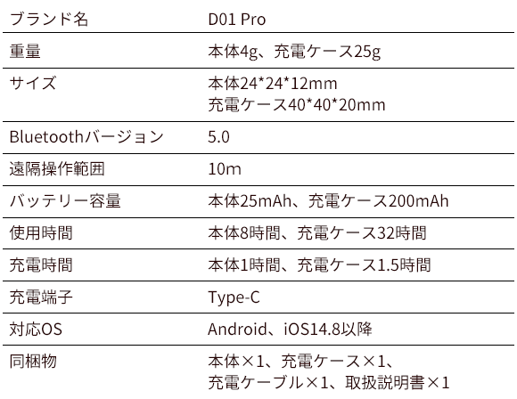 「D01 Pro」は、Bluetoothペアリングすれば、iOS/Androidのカメラのシャッター・音楽再生・音量調節・着信対応などをワイヤレス遠隔操作できるリモコンリングです。