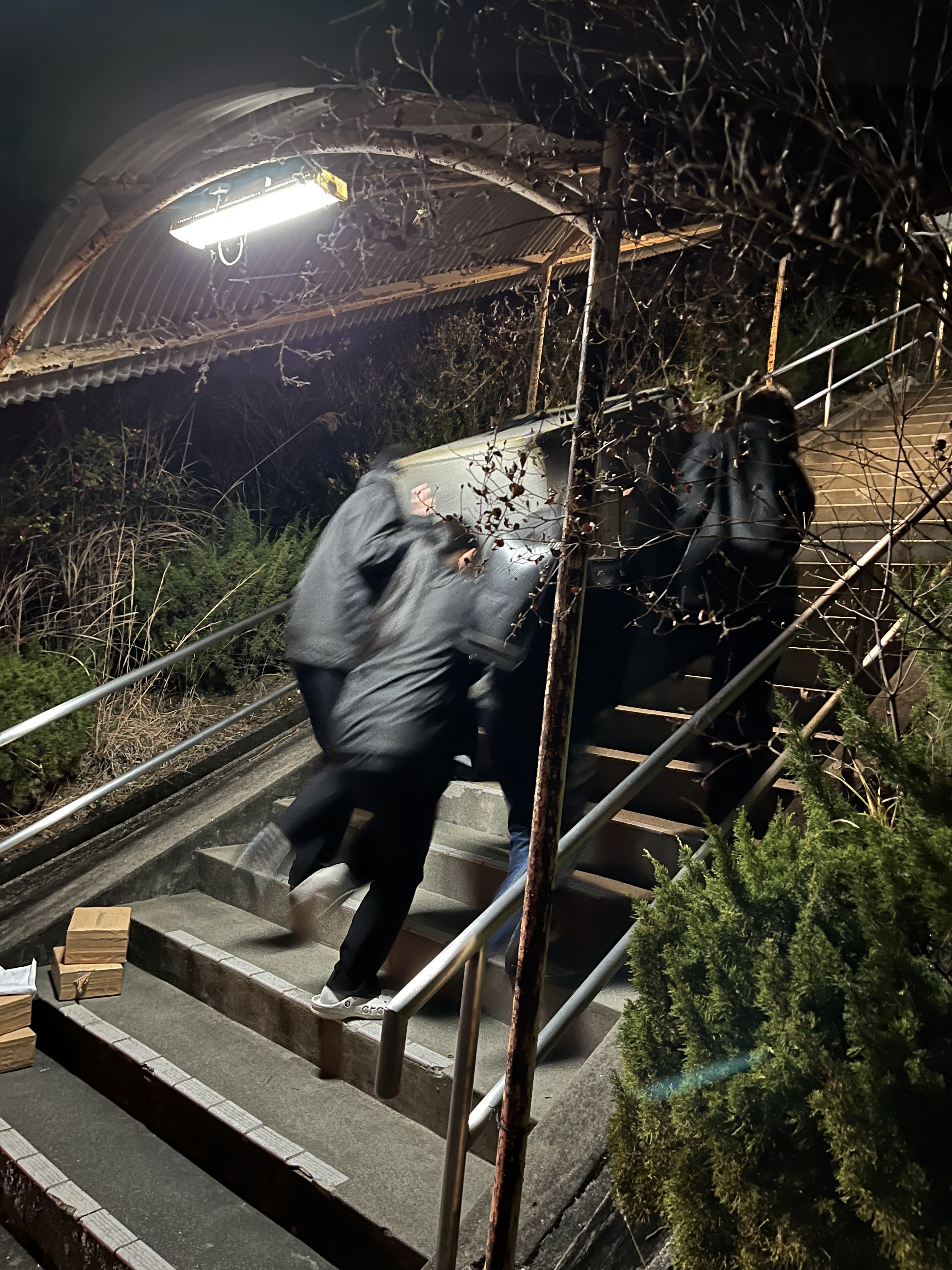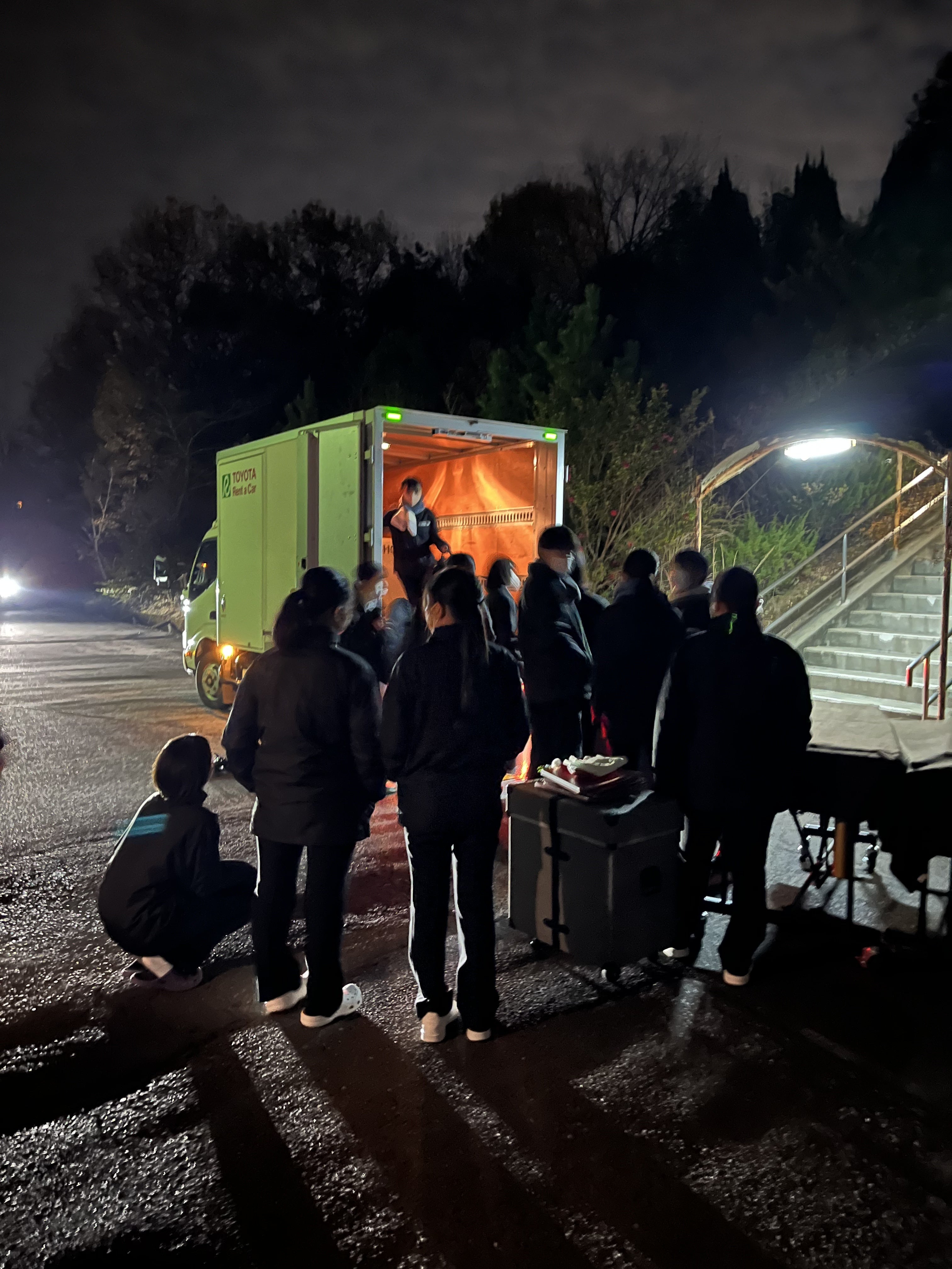 練習後、楽器を積み込み、アウトレットへ移動。今回は、トラックがいつもより少し小さいため3往復することに…。それでも部員たちは演奏のためならばと、頑張ります。