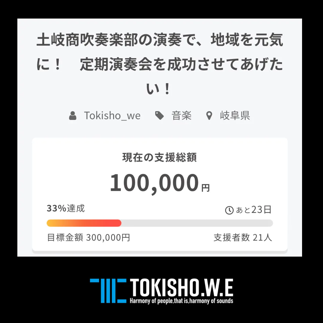 支援金、¥100,000が達成しました!ご支援してくださった方、ありがとうございます。しかし、活動にはまだまだ資金が必要です。様々なリターンもありますので是非、私たちの活動報告を見ていただきご支援いただけると嬉しいです。現在は定期演奏会に向けて準備中です。