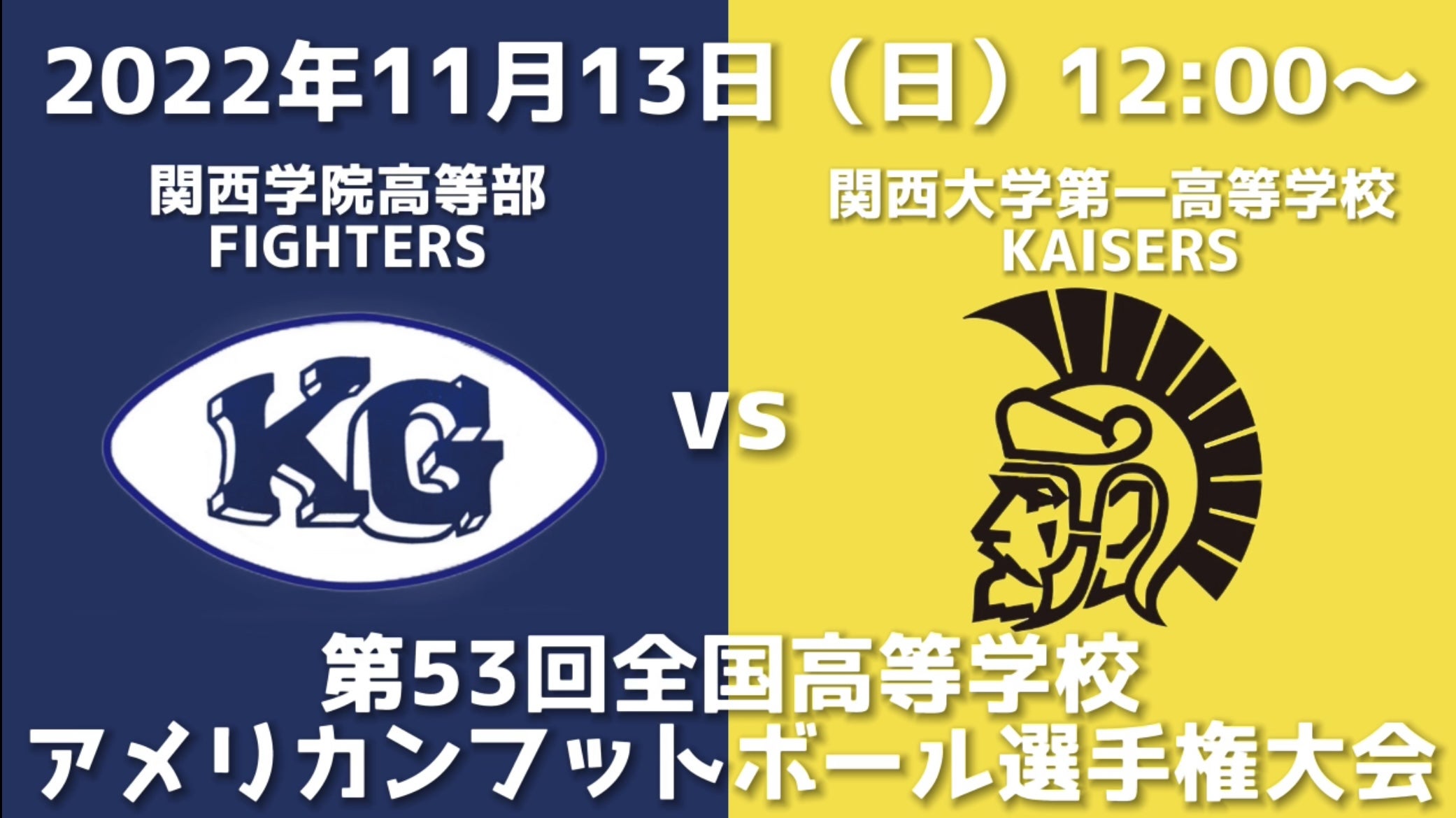 11:00関西学院高等部vs関西大学第一高等学校(①)14:00崇徳高等学校vs同志社国際高等学校(②)