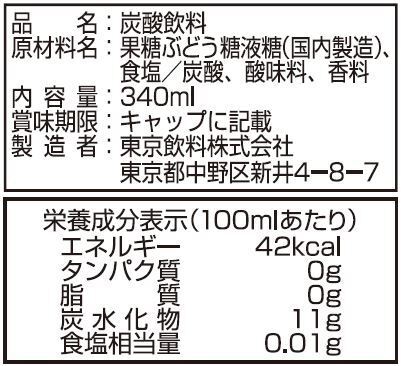 ◆原材料:果糖ぶどう糖液糖(国内製造)、食塩/炭酸、酸味料、香料