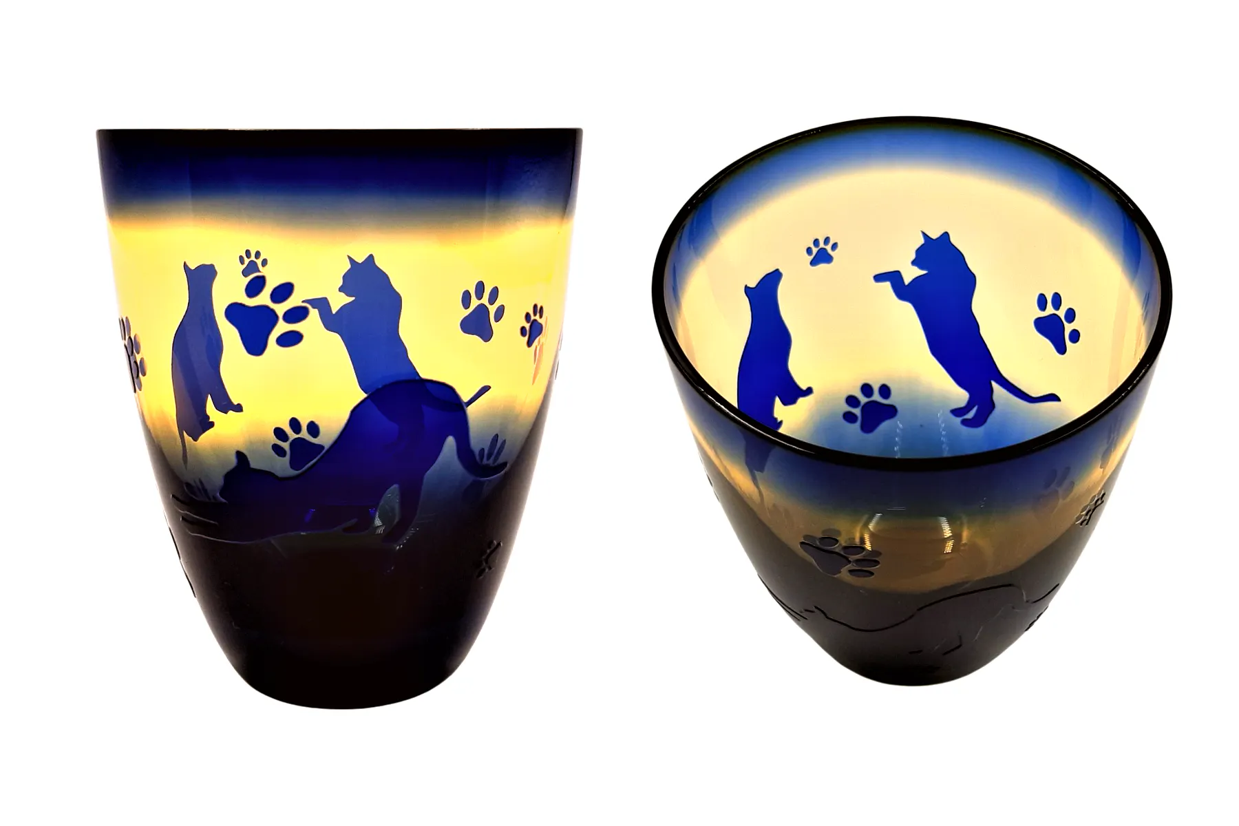 シルエットシリーズ:猫をシルエットデザインにした瑠璃色と淡いオレンジの2色が特徴のオシャレなタンブラーです。少し幻想的な感じがします。