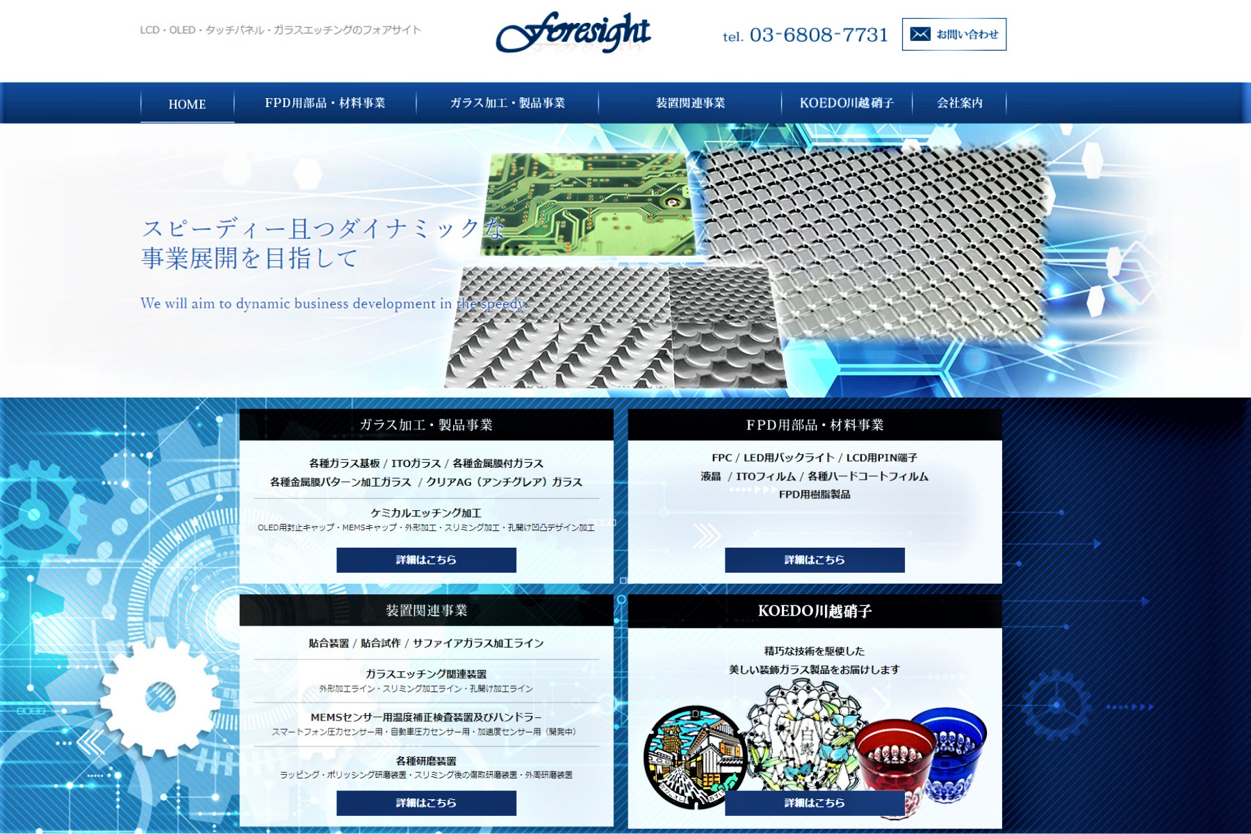 弊社(株式会社フォアサイト)は、LCD(液晶)やOLED(有機EL)、タッチパネル等の電子ディスプレイ用の材料・部品・装置を主に販売する小規模の商社です。