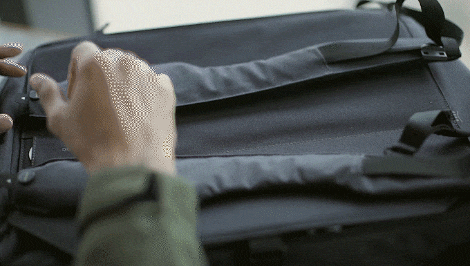 バックパックとして背負えるだけではなく、上と横にも取手がついているので縦持ちや横持ちはもちろん、ショルダー部分の重心を調整することによりダッフルバッグとして持つことも可能です。