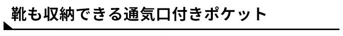 さらに嬉しいことに、TRIPPERなら靴の収納もできます!メイン収納とは別に靴を入れられるポケットがついているので、ジムや仕事用の靴などを、手荷物を増やさずに持ち歩くことができます。使わない時は内側から畳んでしまえば、メイン収納の空間にも影響はありません。
