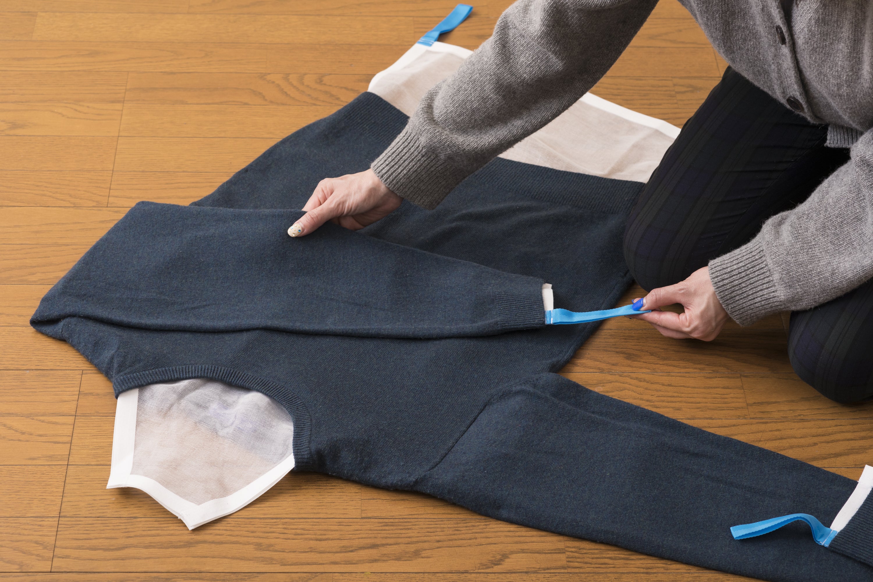 1.インナーネットを衣類の内側に入れ、袖を通して形を整えます