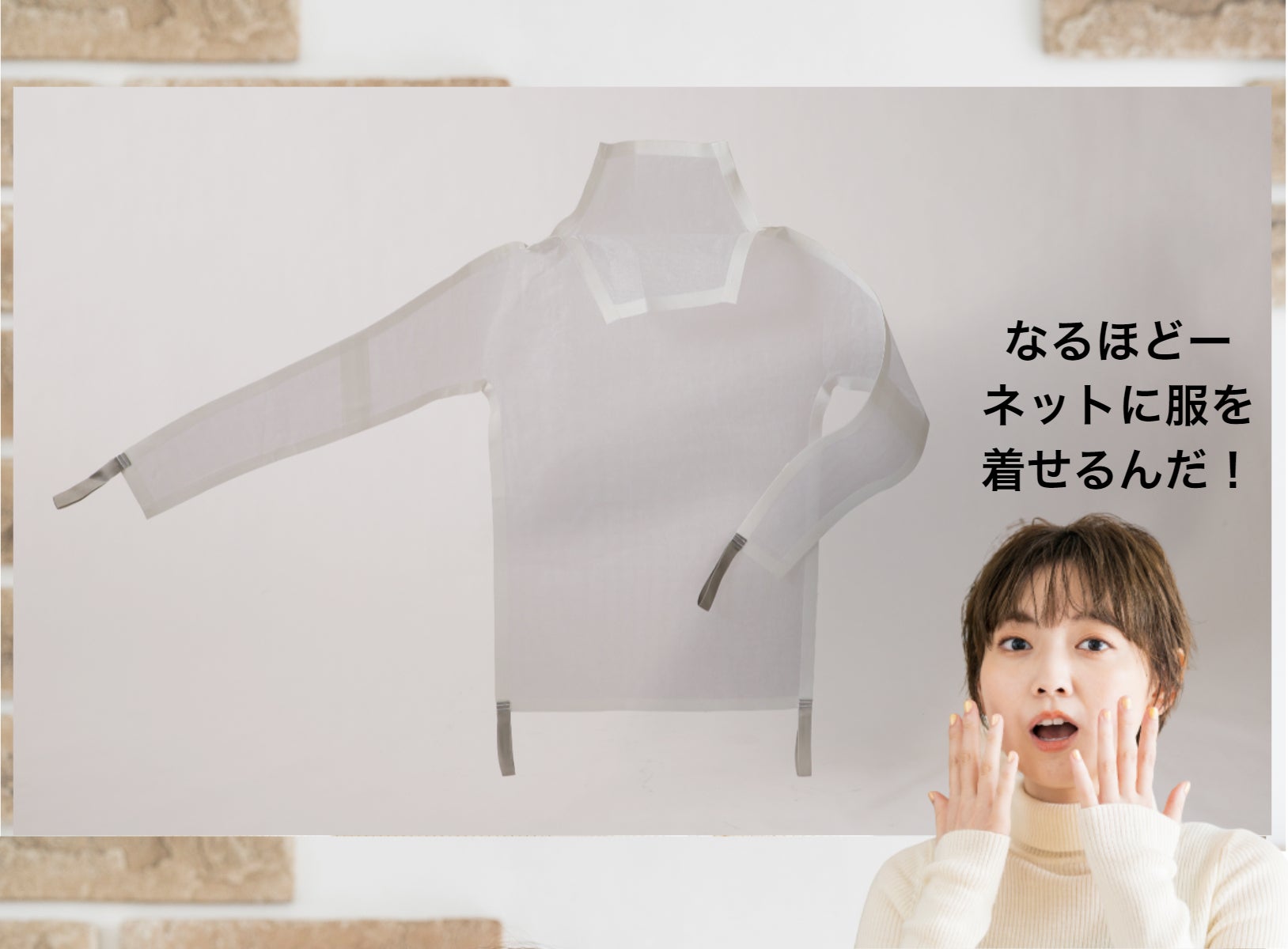 お洋服の内側に入れるネットです。人の形になっているので、袖を通してネットにお洋服を着せるように装着します。