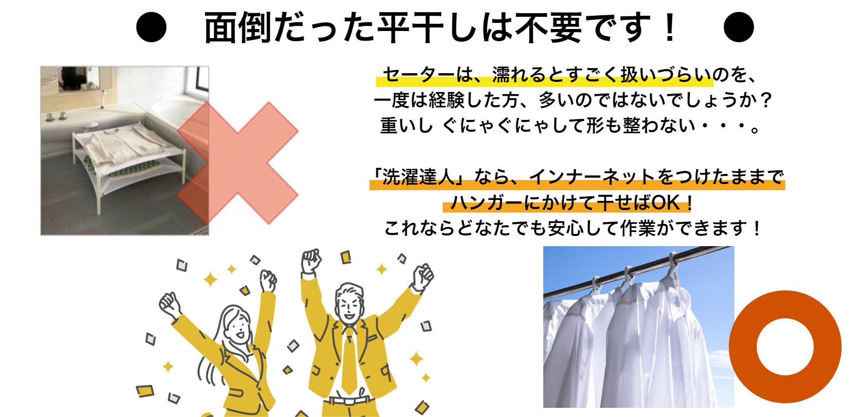 老舗ニットメーカーが、長年のものづくりの知恵を生かして開発した「洗濯達人」。