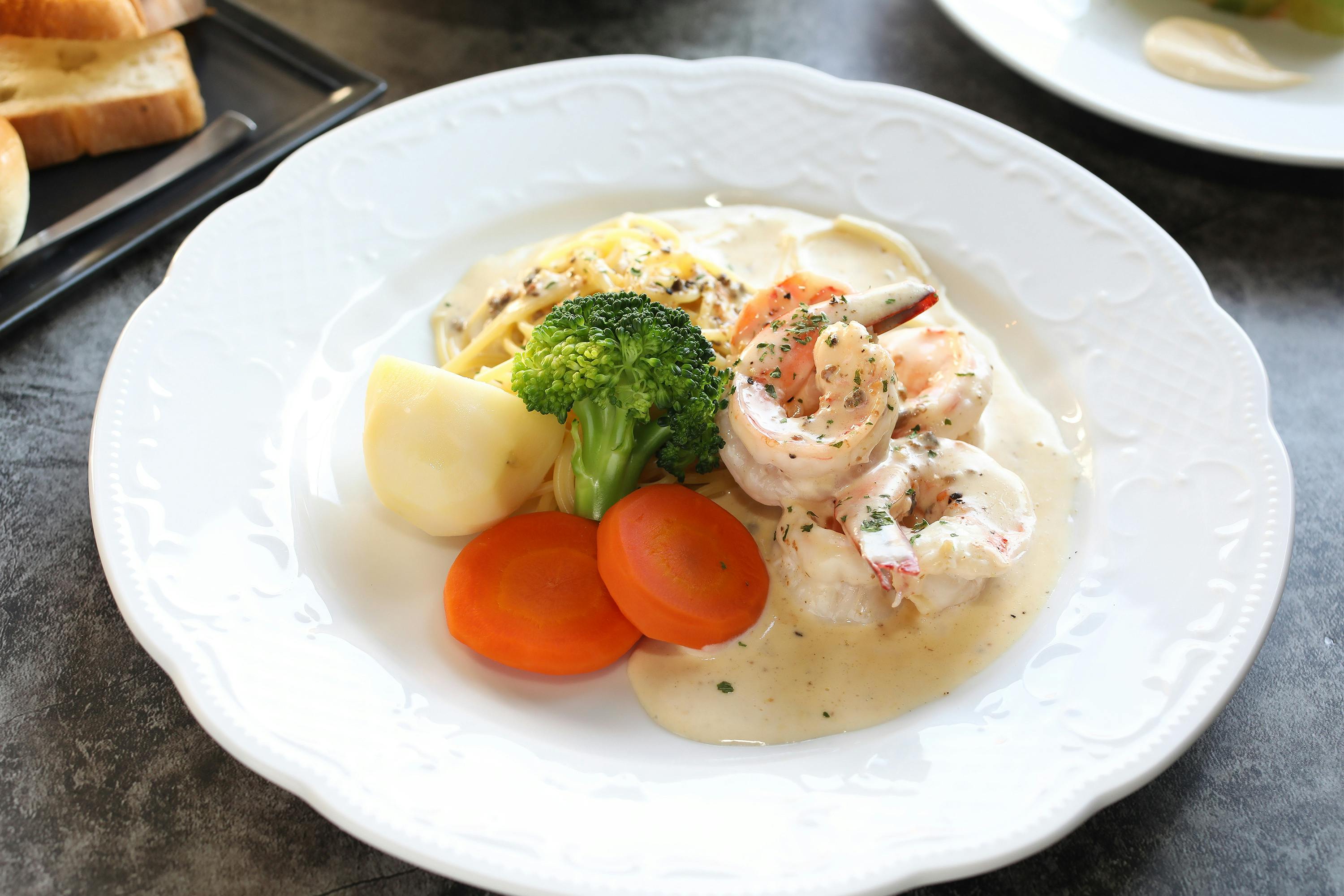 特徴:濃厚なアンチョビクリームソースを絡めて食べるプリプリ海老が絶品の人気メニューです。