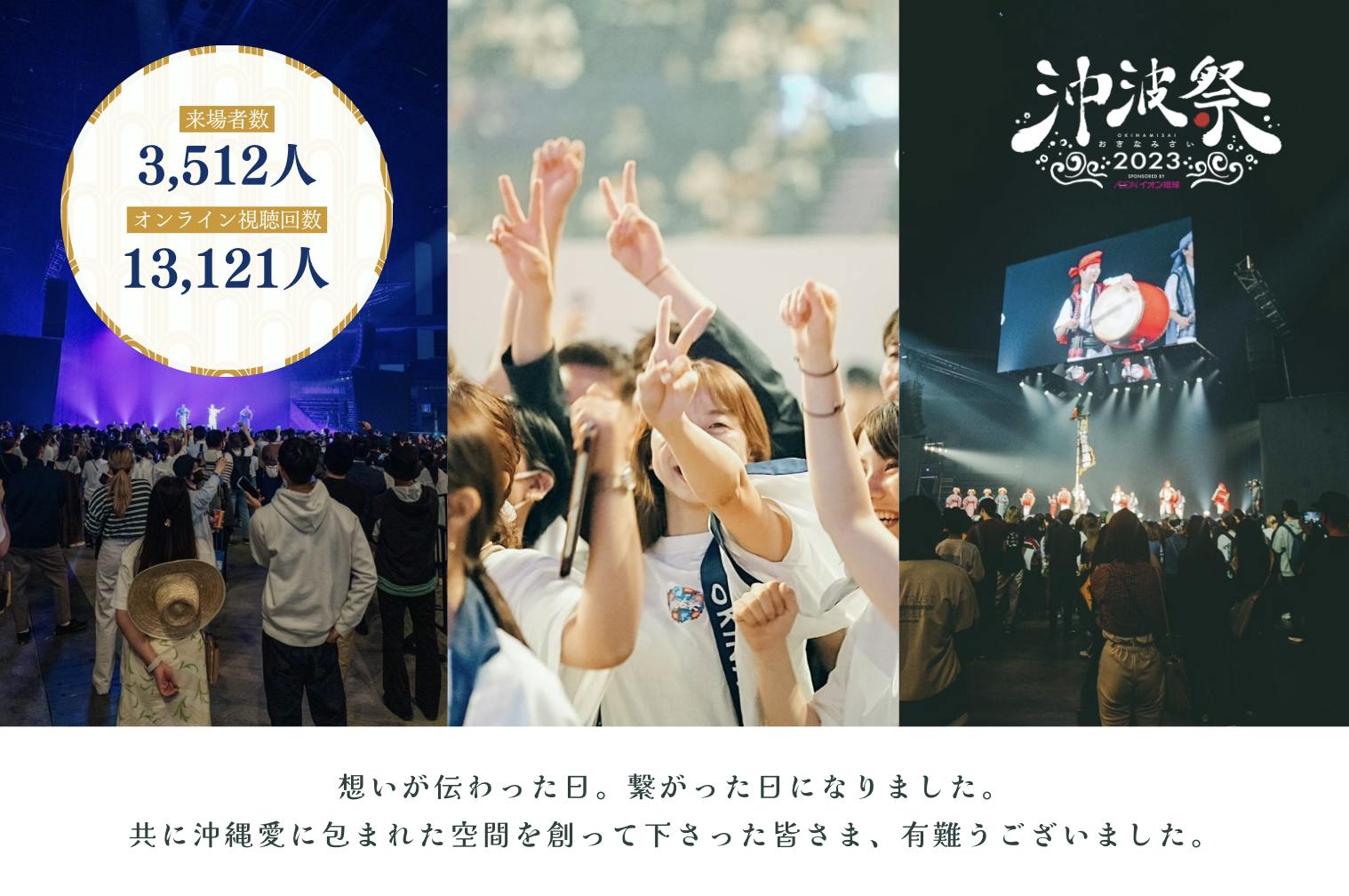 2023/03/31 17:49たくさんの応援、誠に有難うございました。3月11日に開催されました、初開催「沖波祭」無事終演いたしました。当日はご支援者様を含む大勢のお客様にお越しいただき初開催とは思えない景色を創り上げることができました。皆様の応援・ご支援があったことで当日に向けて走り切ることができました。心から感謝の気持ちを申し上げます。ご支援をしていただいた皆様へは、引き続き定期的な発信を続けて参りますので今後ともどうぞ宜しくお願いいたします。__________________【リターン発送について】▶︎予定通り4月の発送に向けて準備を進めております。発送が完了いたしましたら再度ご連絡を差し上げますのでご確認の程宜しくお願いいたします。お手元に届くまでもうしばらくお待ちくださいませ。__________________沖波祭はこれからも沖縄を舞台に挑戦する若者を応援し続けます。2023年03月11日(土) at 沖縄アリーナ■来場者数:3,512人■オンライン視聴回数:13,121※イベント終了時の視聴回数 もっと見る