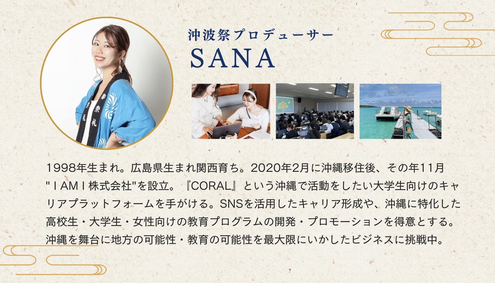 はじめまして、沖波祭プロデューサーのSANAと申します。この度は数あるページの中からこちらのページに来てくださり有難うございます!