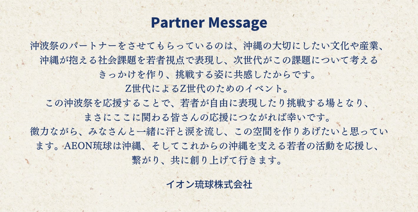 そして、沖波祭の想いに共感をしてくださった豪華アーティストの皆さんの出演も確定しています!徐々に情報を解禁していききますので、どうぞご期待ください!! 沖波祭Coming Soonサイトはこちらから。