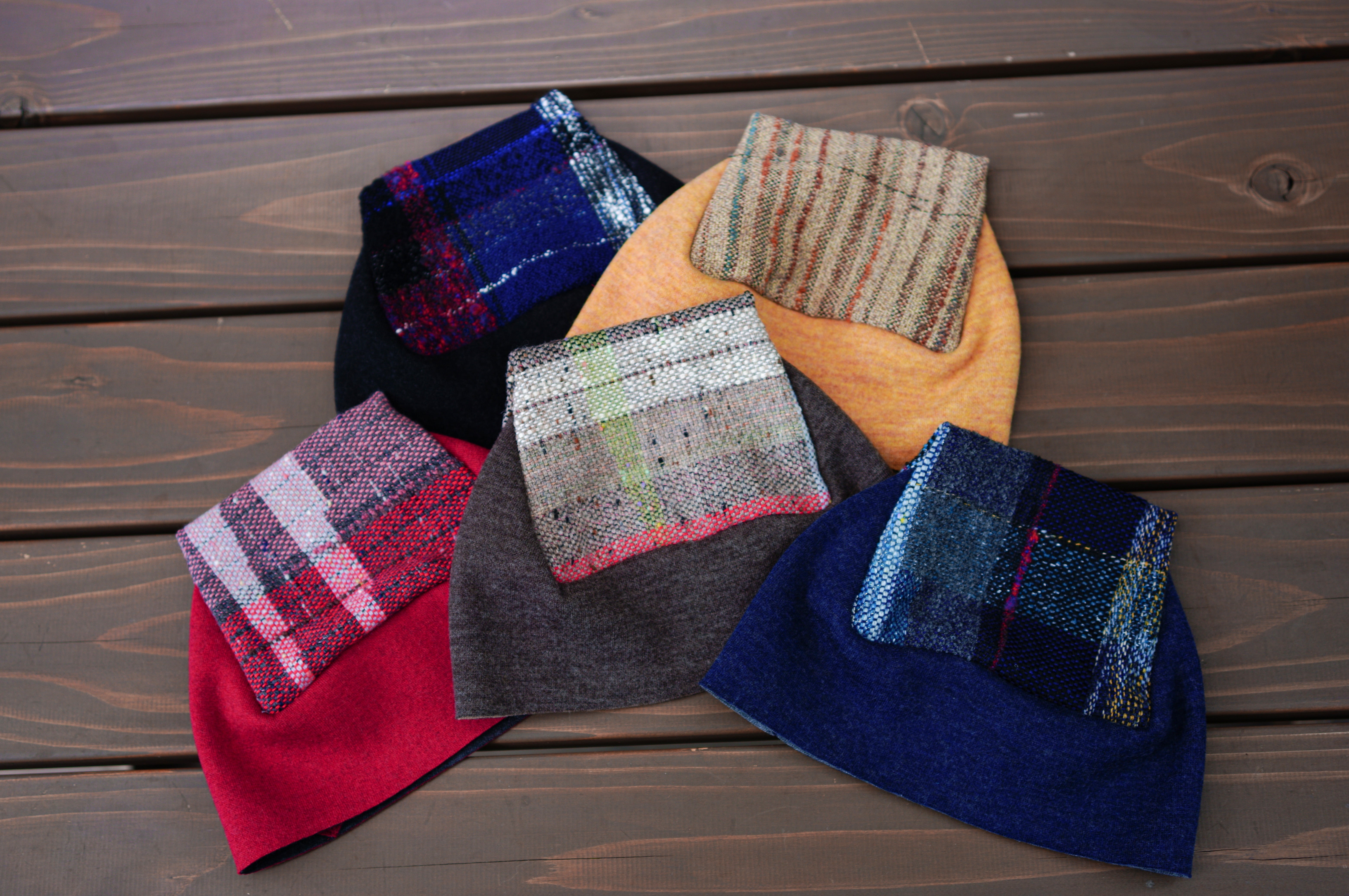 さをり織りの反物を商品に昇華させ、付加価値をさらに上げていくために、ギャラリーやアパレル業界で活躍する作家さんへ作品制作依頼のお声がけをしました。さまざまな思いや柄の交差するさをり織りのユニークな反物に興味を持ち、私たちの取り組みに共感してくれた作家さんたちが試作を重ね、見事な作品が生まれました。