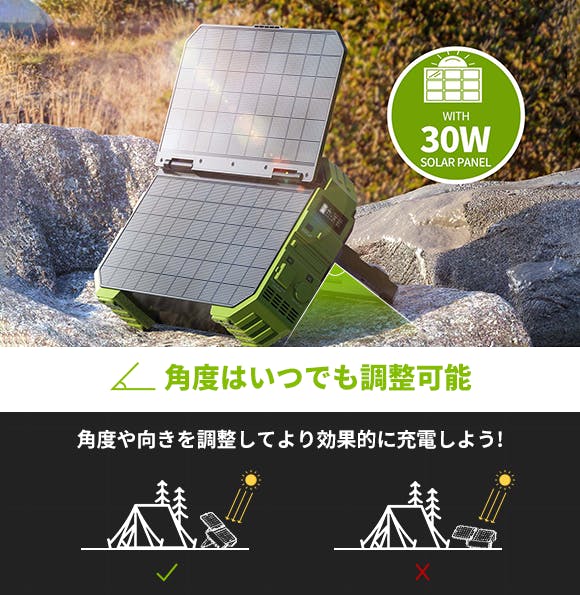 太陽光パネルで充電できるポータブル電源は多くありますが、使用時に取り付けたり、別途購入しなければならなかったりするので、余分なコストがかかりますし、持ち運び時も余計に重くなります。