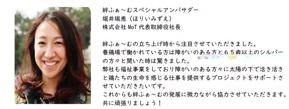 障がいのある方々が活き活きと働ける養鶏場を広げ、幸せを広げたい