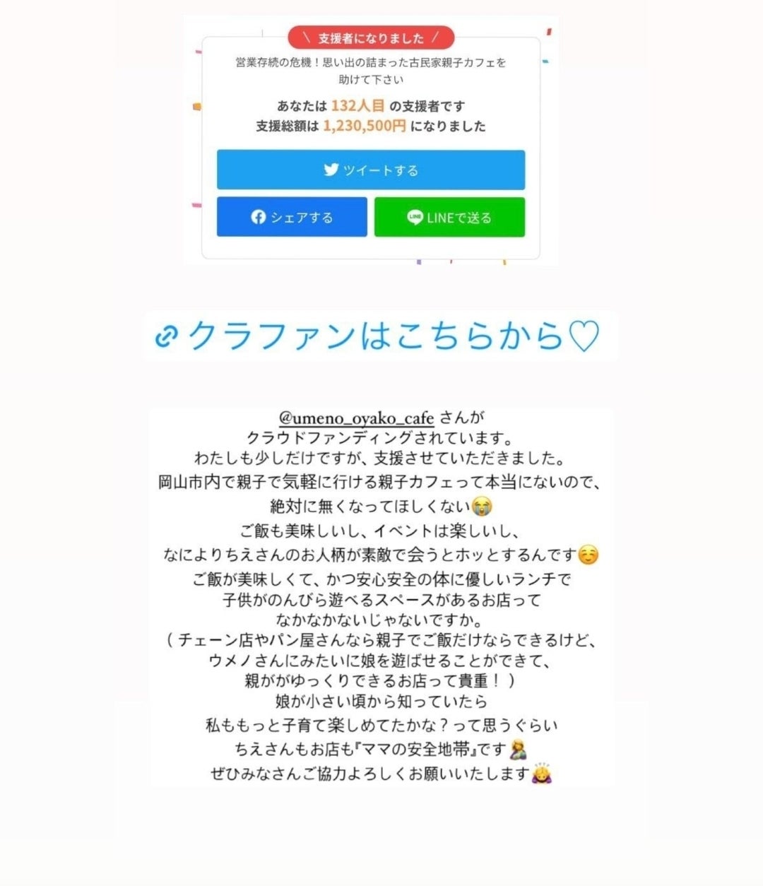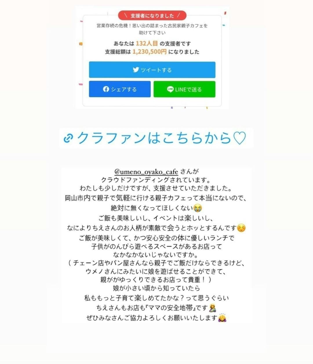 支援してくれた方がインスタグラムに載せてくれました。