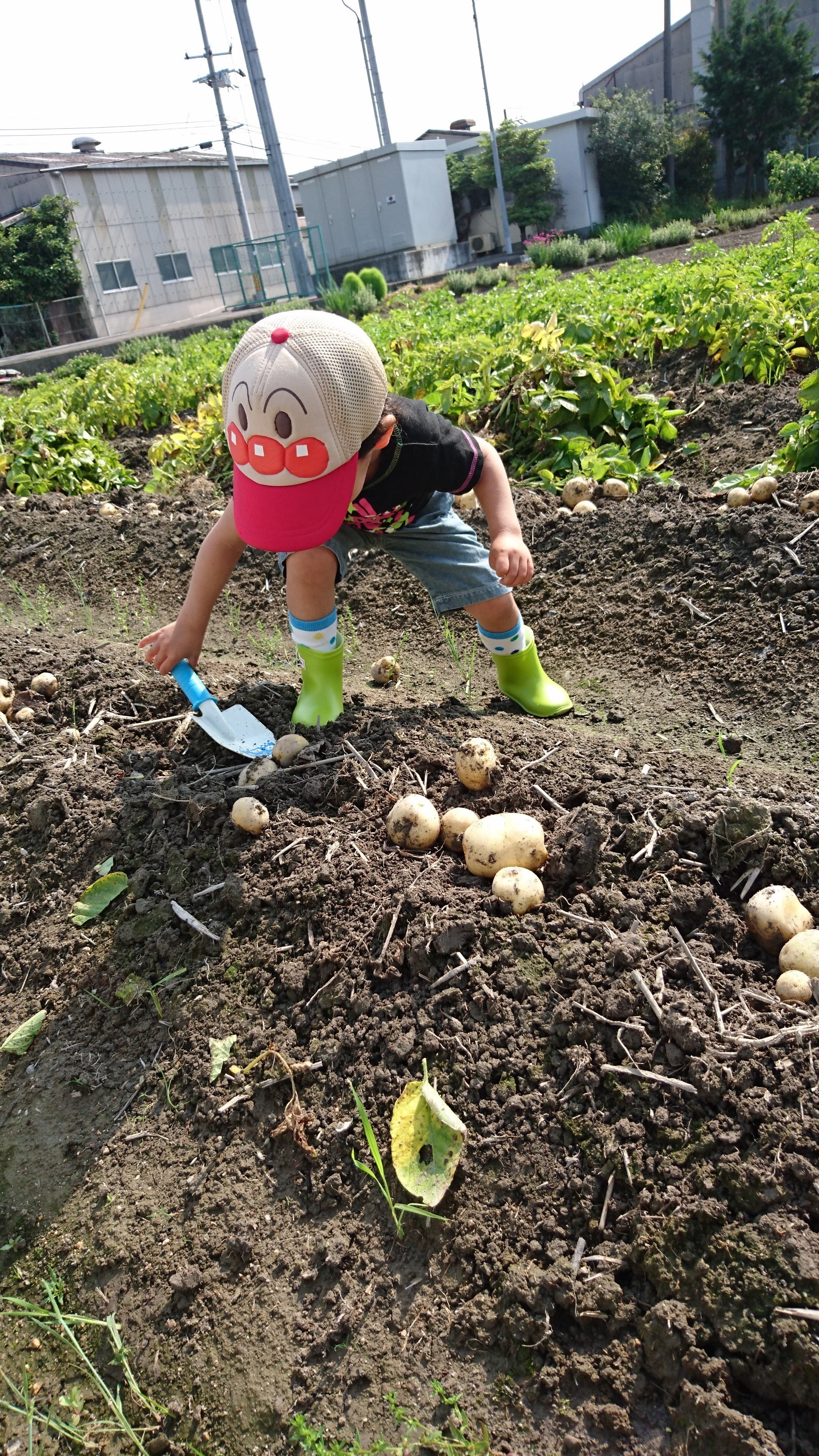 ランチに使うじゃがいもを掘る息子(当時2歳)