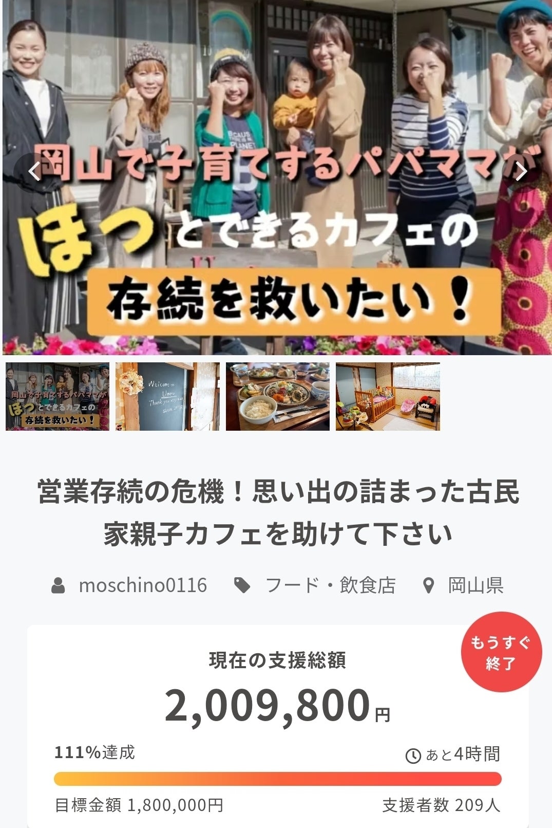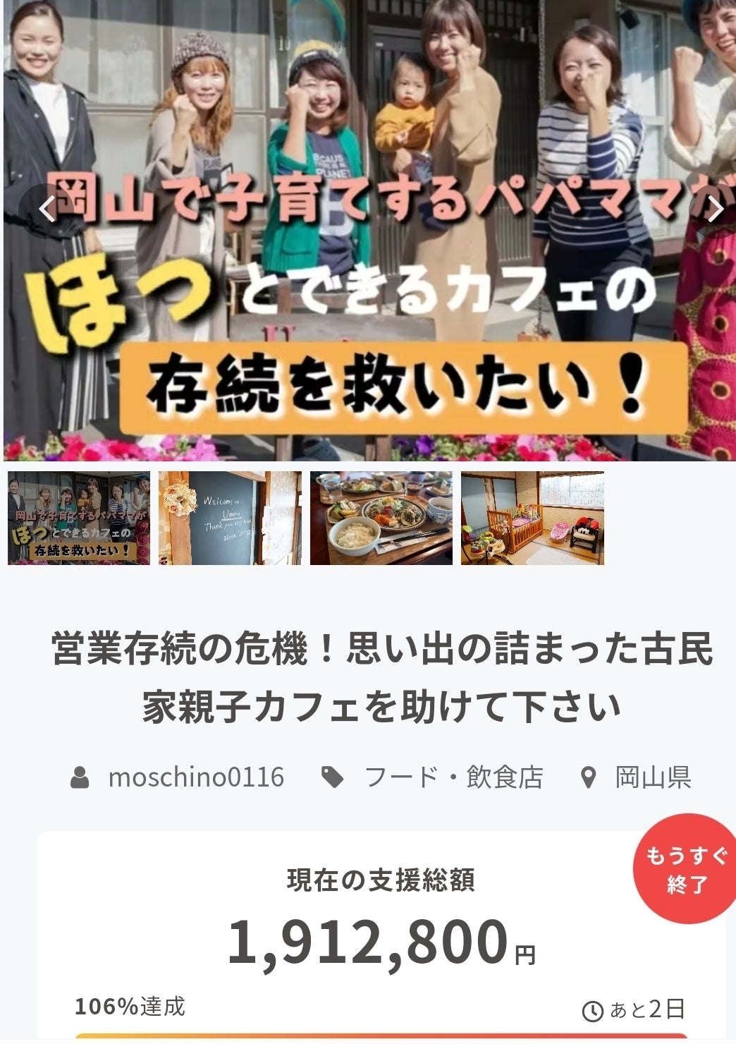 2023/01/31 23:30最終日に200万円をこえることができました!!!皆様本当にありがとうございました。振り返って書くと長くなるので感謝はリターンの御返事にて返しますね。修繕の為お金は必要でしたが、それ以上の価値のあるクラウドファンディングになりました。共に伴走してくれたプロジェクトメンバーを初め、支援、応援、拡散してくれた方々に支えられての達成はとても幸せでした。7年間続けてきて良かった…。クラウドファンディングを通してこれからも末長く続けていきたいという思いも強くなりました。心より感謝申し上げます。素敵な時間をありがとうございました。Umeno ちえ もっと見る《50日目》