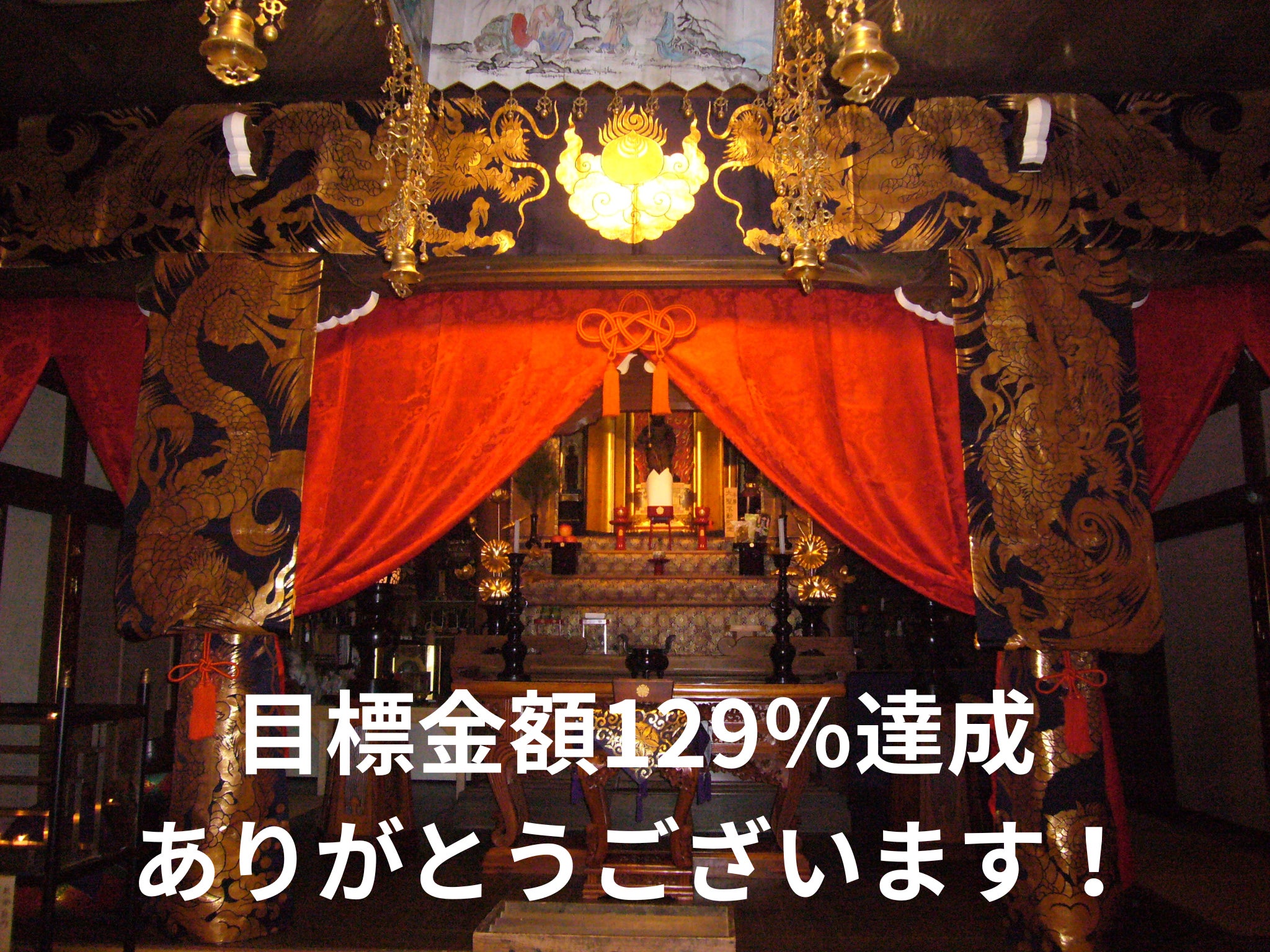 皆様の多大なる御支援を賜り、心より感謝を申し上げます。ありがとうございます。おかげさまで、日本全国116人の方から907,250円の温かい御支援を頂くことができました。関係者の皆様、御支援者の皆様に厚く御礼申し上げます。御寄せ頂きました御支援金は、大石内蔵助さんゆかりの貴重な文化財を保管する宝物殿を修復する資金として、大切に活用させて頂きます。リターンの発送につきましては、3月上旬より開始させて頂きます。4月中旬までには、宝物殿の修復工事が完了する見込みです。修復工事が無事に完了しましたら、ぜひ当寺へ足を運んで頂き、320年前から受け継がれた文化財を直接ご覧頂きながら、大石内蔵助さんを見守られた御本尊不動明王にお参り頂きましたら幸甚です。それでは略儀ではございますが、御礼のご挨拶とさせて頂きます。令和5年1月吉日感謝合掌神遊山岩屋寺 住職 大須賀珠心