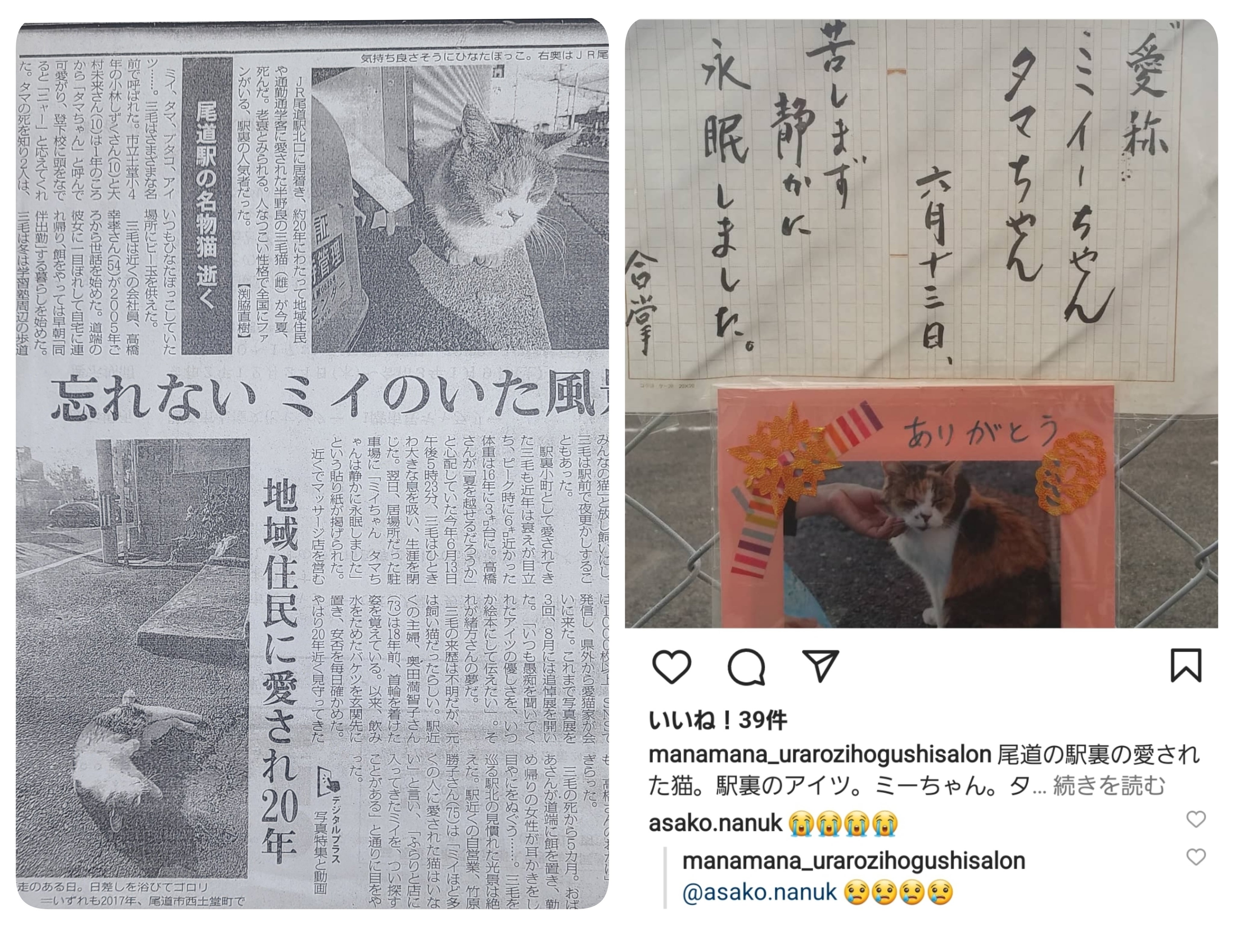 尾道駅の北口付近に20年ほど暮らし続けた三毛猫の生きた証を残したい。