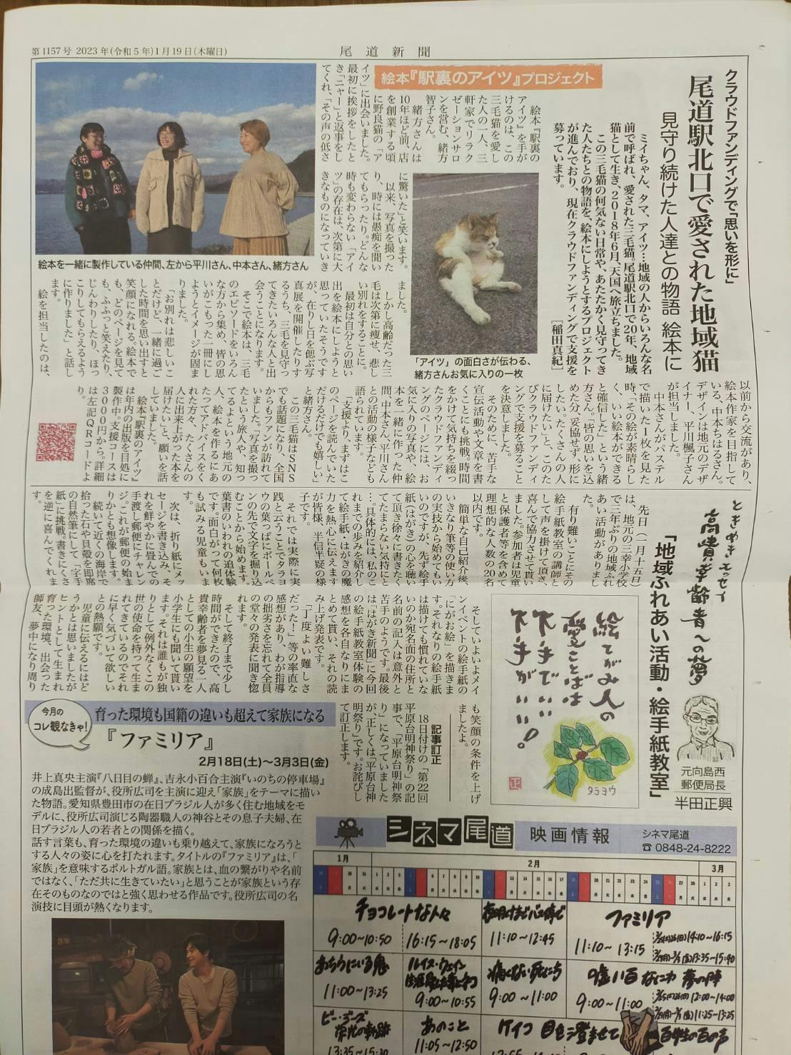 尾道新聞に掲載していただきました