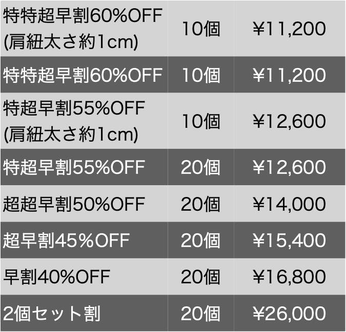 今回は全種類、肩紐付きでそれぞれ下記の価格となります。鞄の種類、長さはオプションから選択してください。
