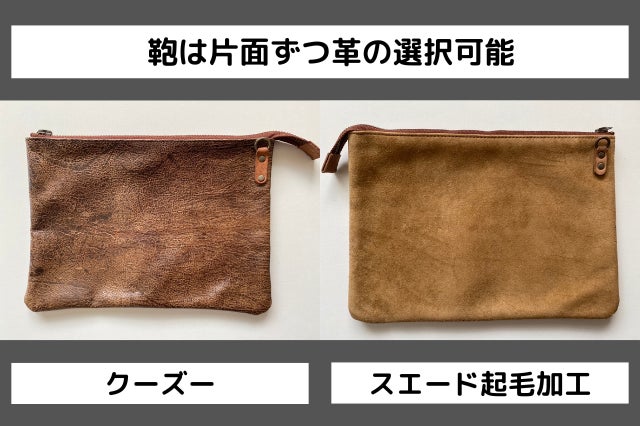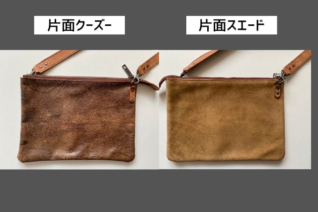 C:片面ずつ:片面はクーズーの野生味あふれる本革、もう片面はスエー ド起毛加工の本革