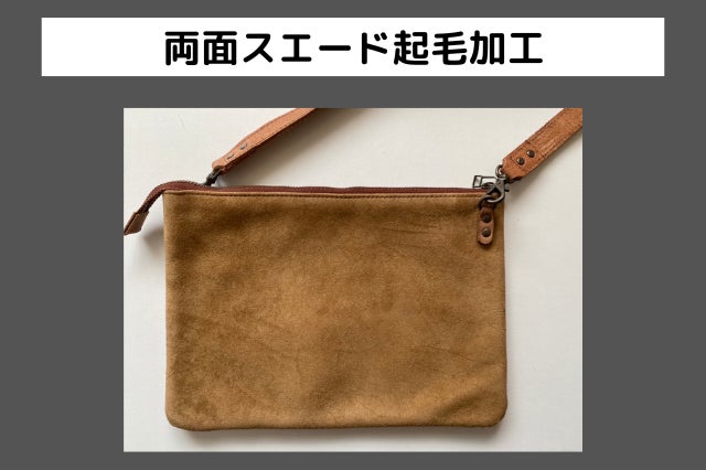 一般的なスエード革よりさらに毛足が短く、独特の肌触りと色合いが最大の魅力。