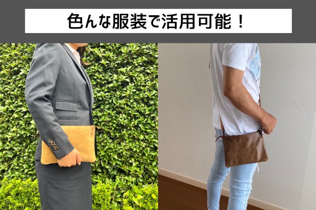 長さ約120cmと約140cmを選べる肩紐により、メンズとレディースどちらにも対応。