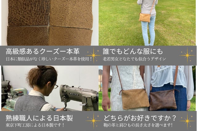 ①東京下町工房の職人さんがひとつひとつ、丁寧に仕上げたショルダーバック「MADE IN JAPAN」!