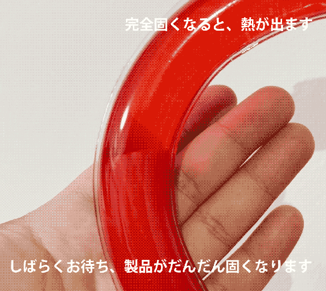 製品を利用開始する場合、加温器を振って結晶核を形成すると、溶液中の酢酸ナトリウム結晶が析出して結晶化熱を放出し、その融解熱は264~289kJ/kgです。