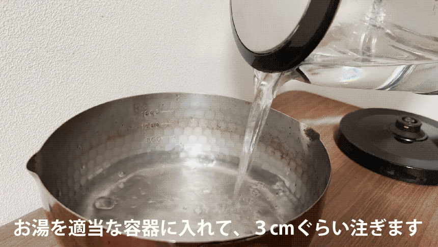 お湯に入れて、3分で暖かくなります!