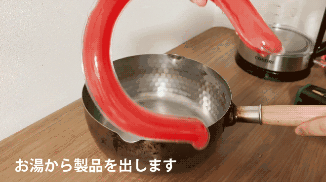-お湯から取り出した直後はとても暖かたくなります。やけどにはご注意ください。