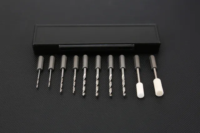●8本の穴あけ用ドリルビット+2本の磨き加工用パフも付属