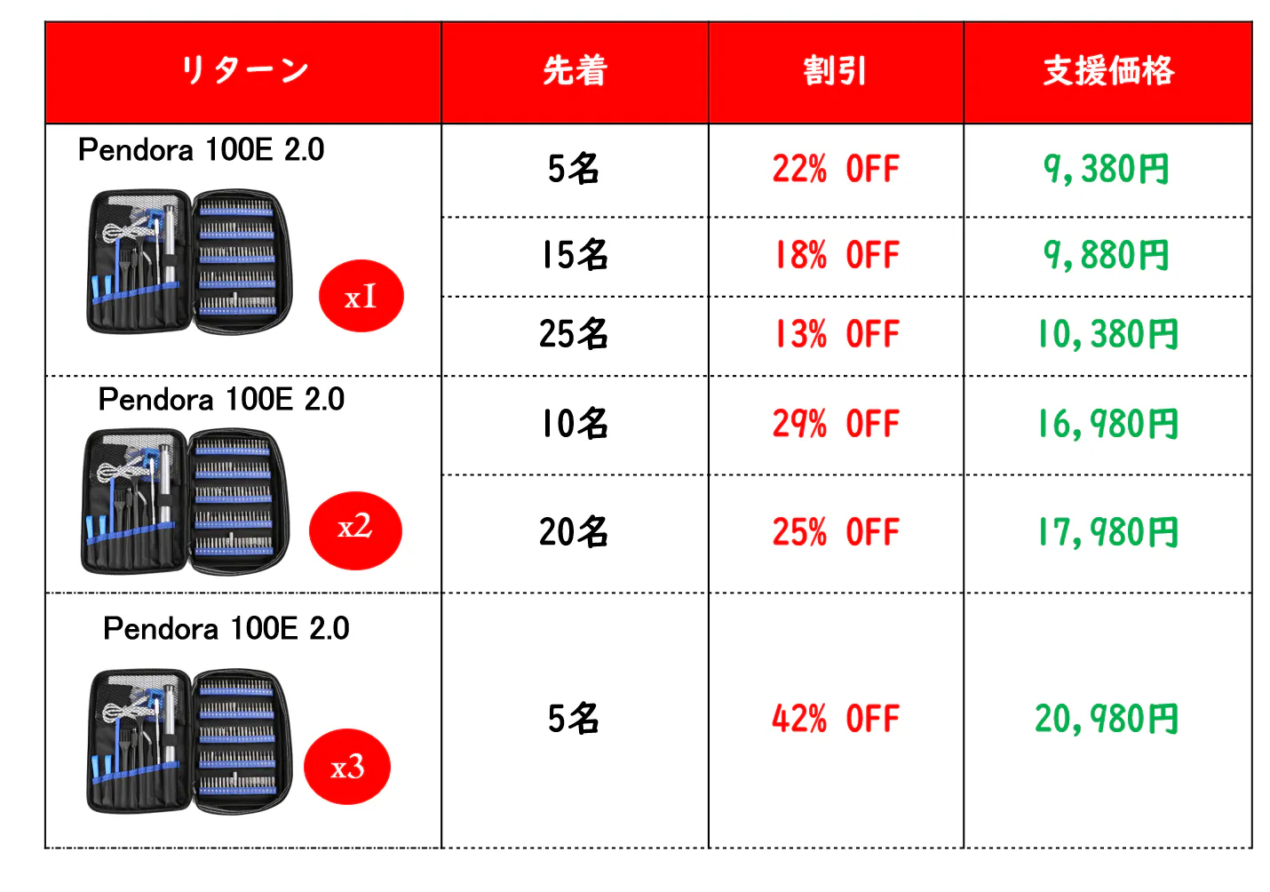 ・「PENDORA 100E 2.0」を日本市場にご紹介するのに必要なマーケティング費用などに使わせていただきます。