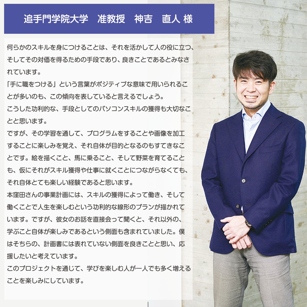 当プロジェクトを通じて、一人でも多くの方が社会で活動できるようになってほしいと願っています。
